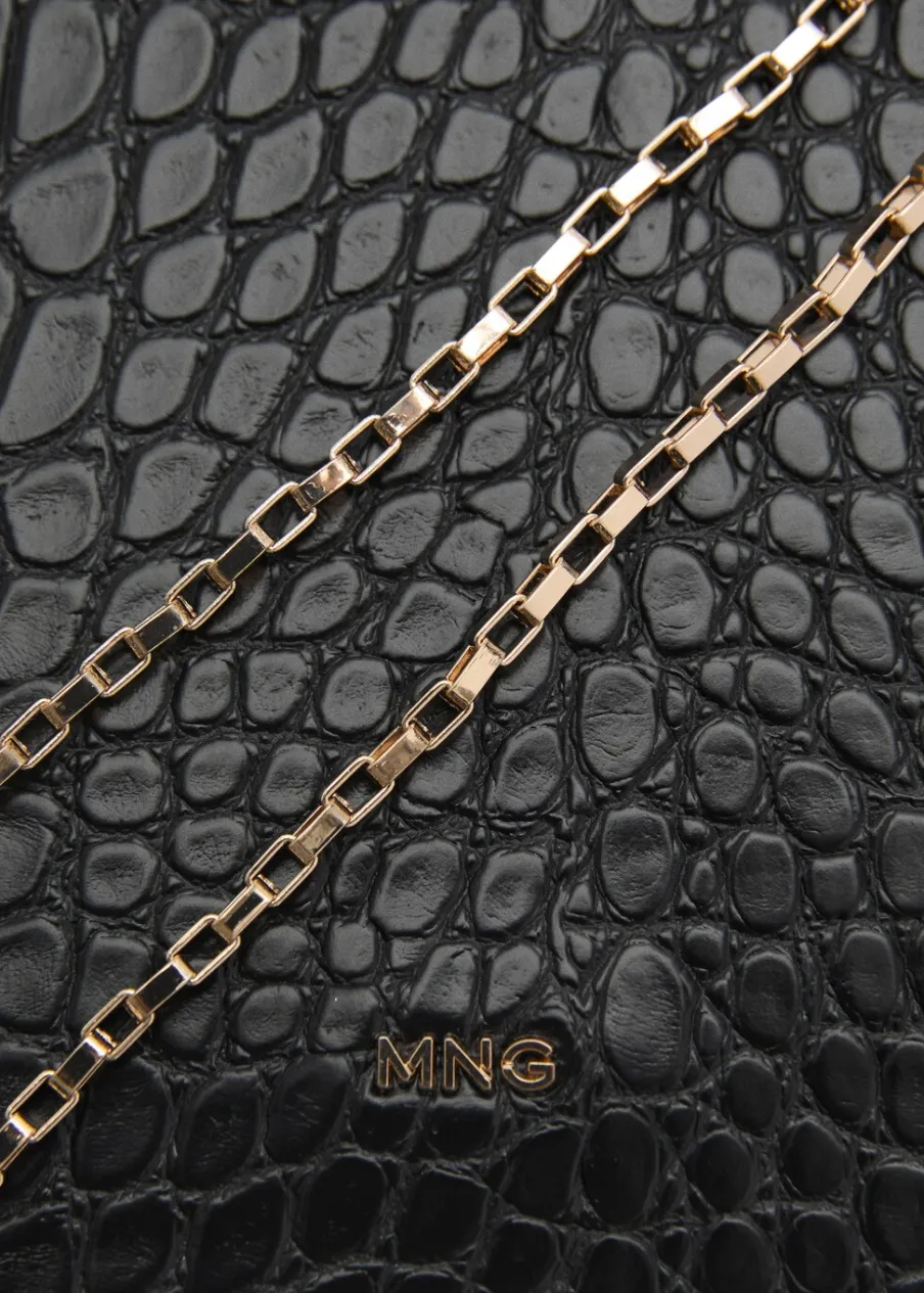 Kilka przegródek na karty. Zapięcie u góry na suwak. Detal z logo. Odpinany łańcuch. Duża wielkość. PU.