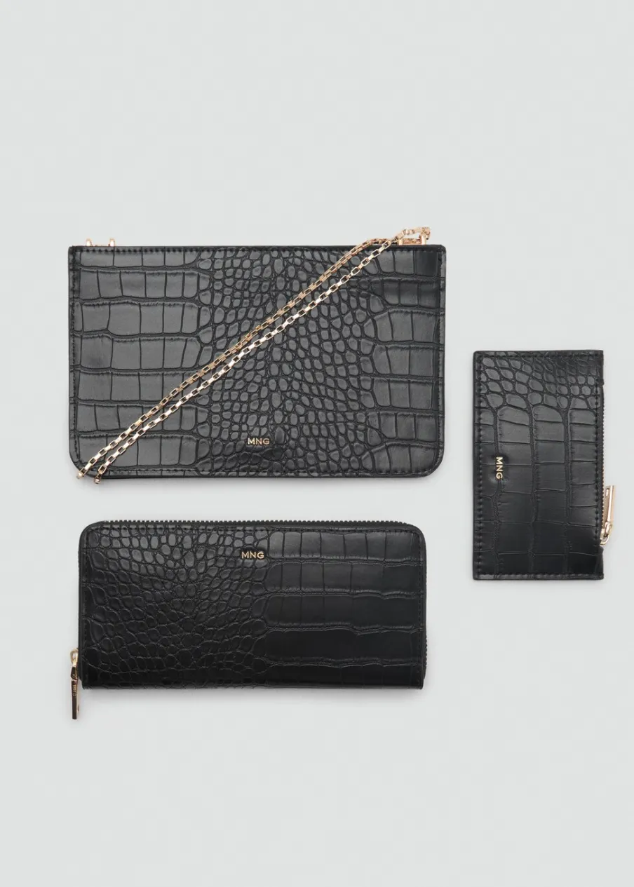 OpisKilka przegródek na karty. Zapięcie u góry na suwak. Detal z logo. Odpinany łańcuch. Duża wielkość. PU.