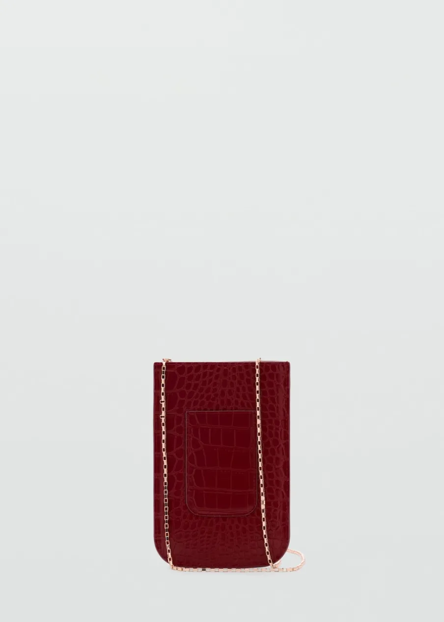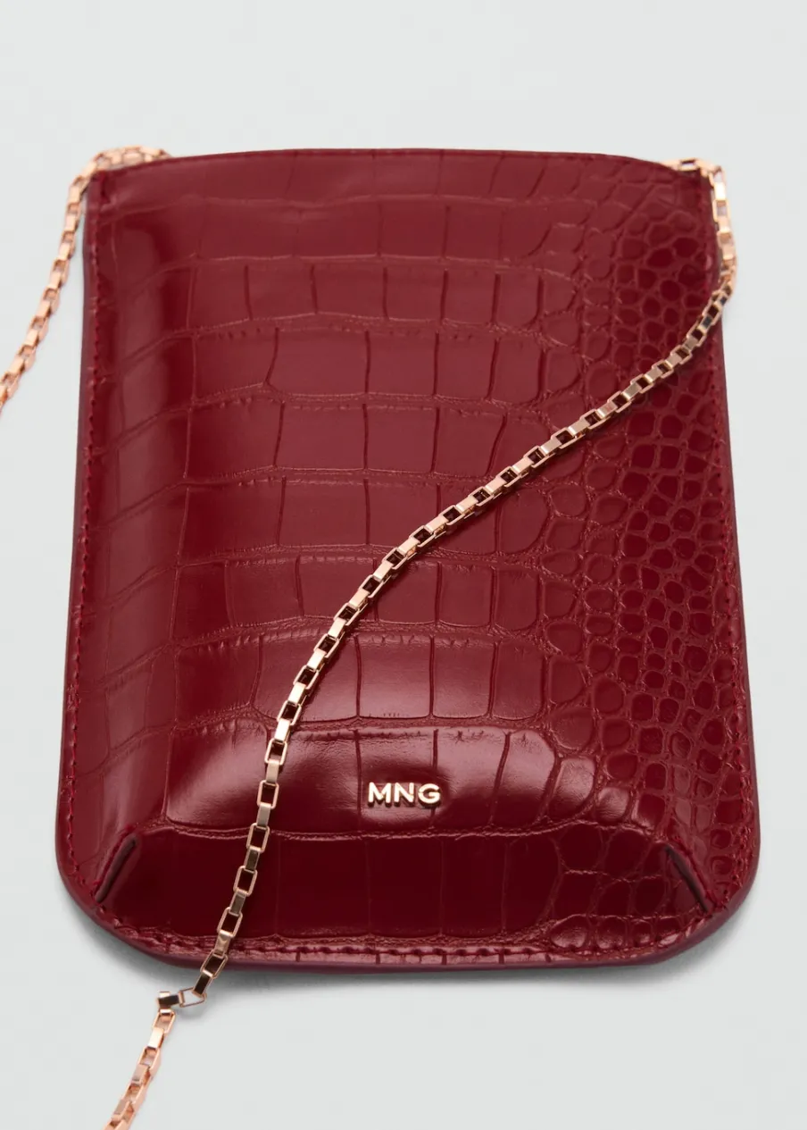 Efekt skóry. Mała wielkość. Pasek do noszenia na ramieniu. Łańcuchowy uchwyt. Bez zapięcia.