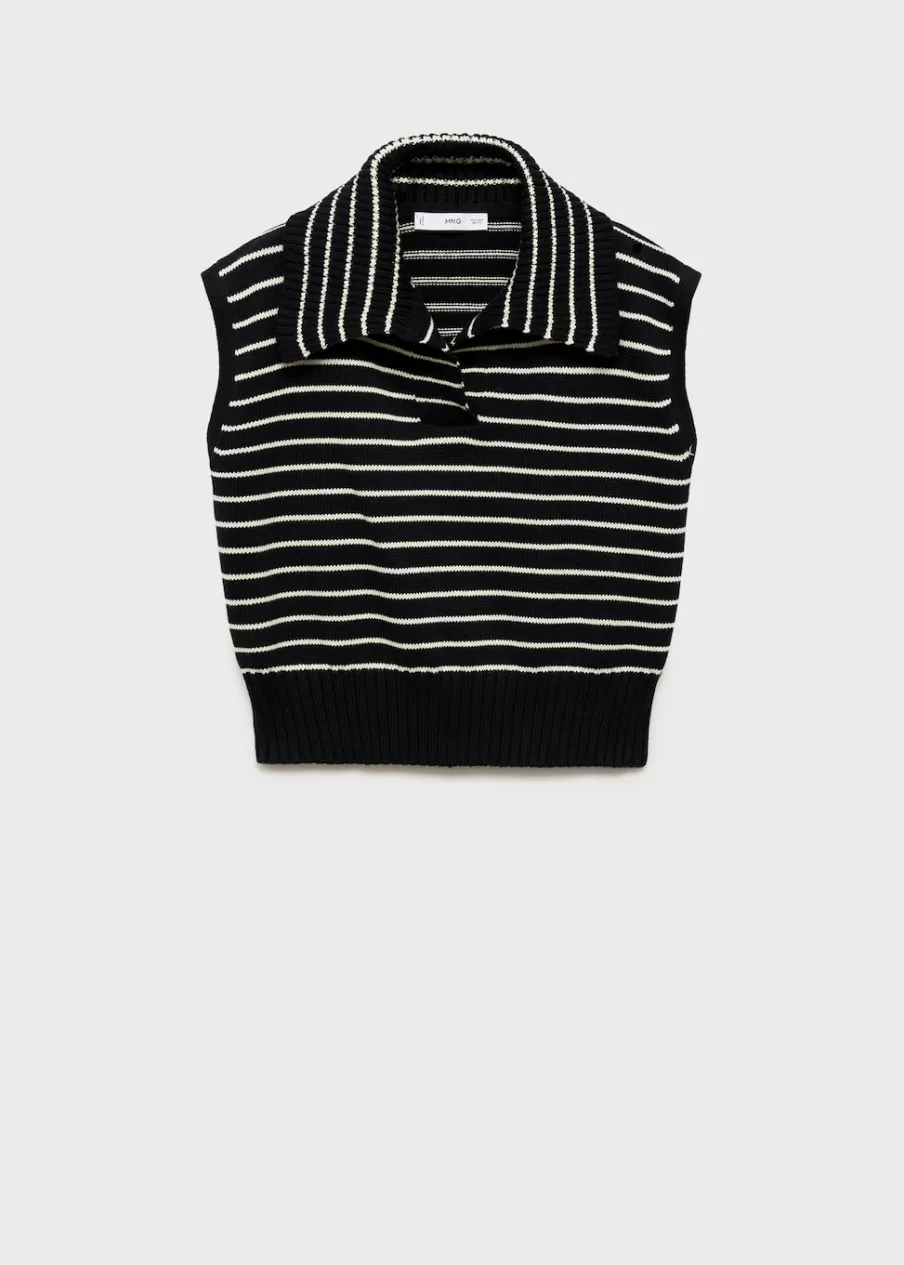 Deseń crop. Tkanina z 100% bawełny. Model oversize. Kołnierzyk polo. Bez rękawów. Nogawki wykończone gumką. Modelka ma 174 cm wzrostu i nosi rozmiar S/36. Modelka ma 175 cm wzrostu i nosi rozmiar S/36. Tkanina z cienkiej dzianiny. Wzór w paski.