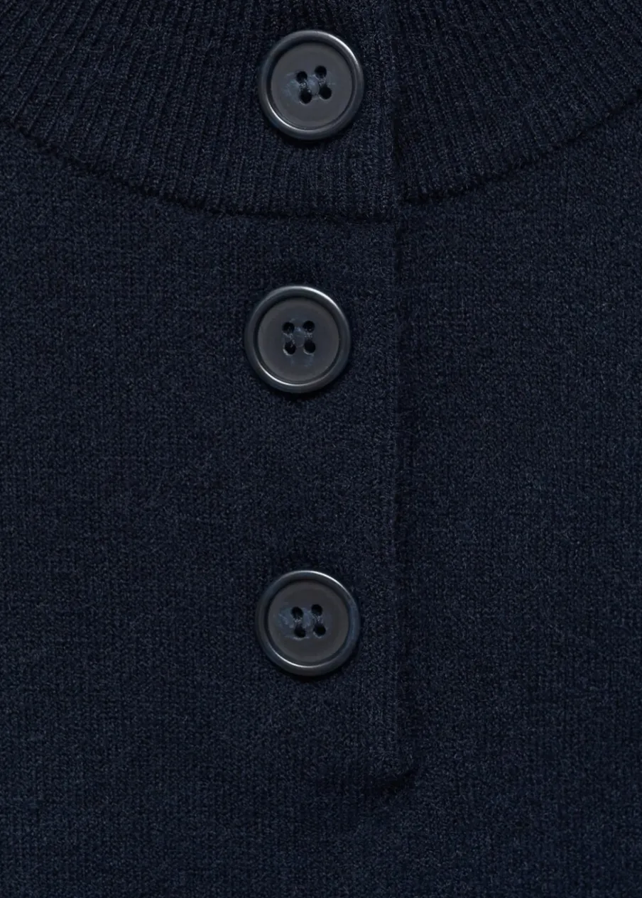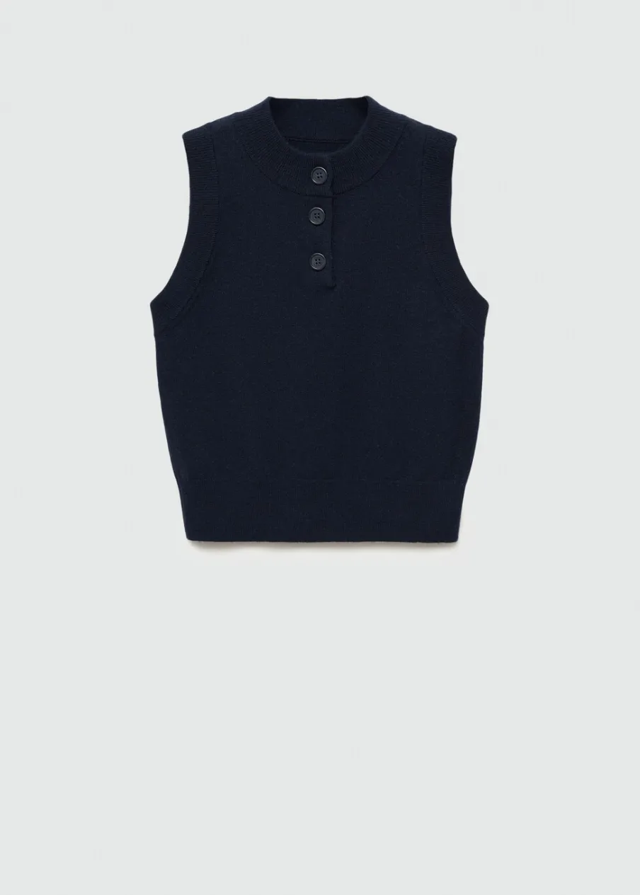 Dzianinowa tkanina. Tkanina mieszanka wełny. Model prosty. Okrągły dekolt. Bez rękawów. Zapięcie z przodu na guzik. Modelka ma 175 cm wzrostu i nosi rozmiar S/36.