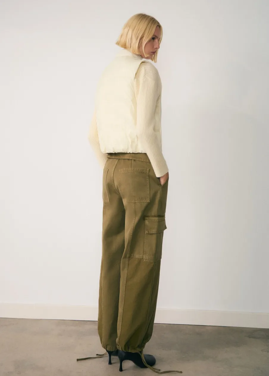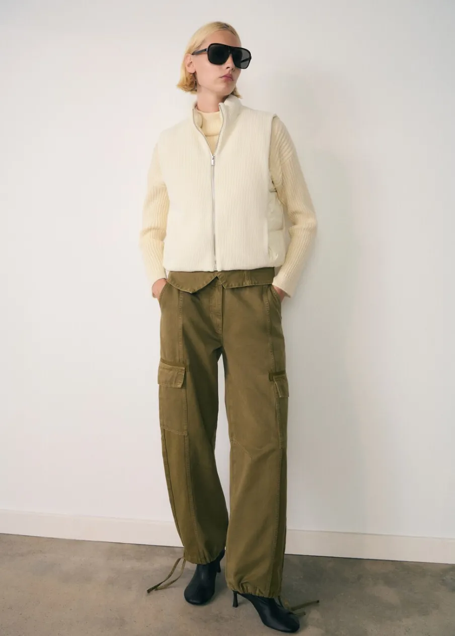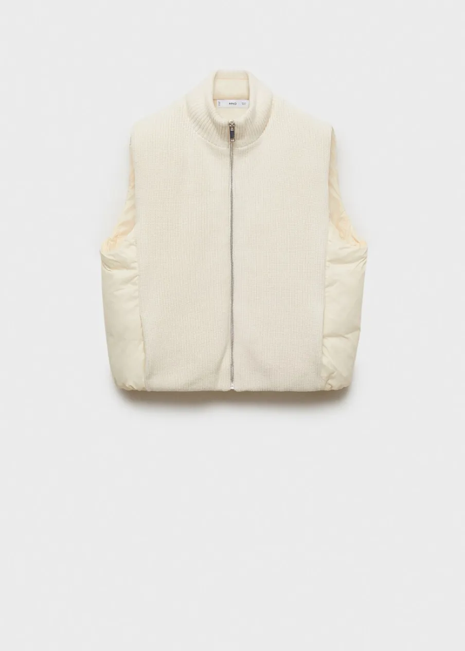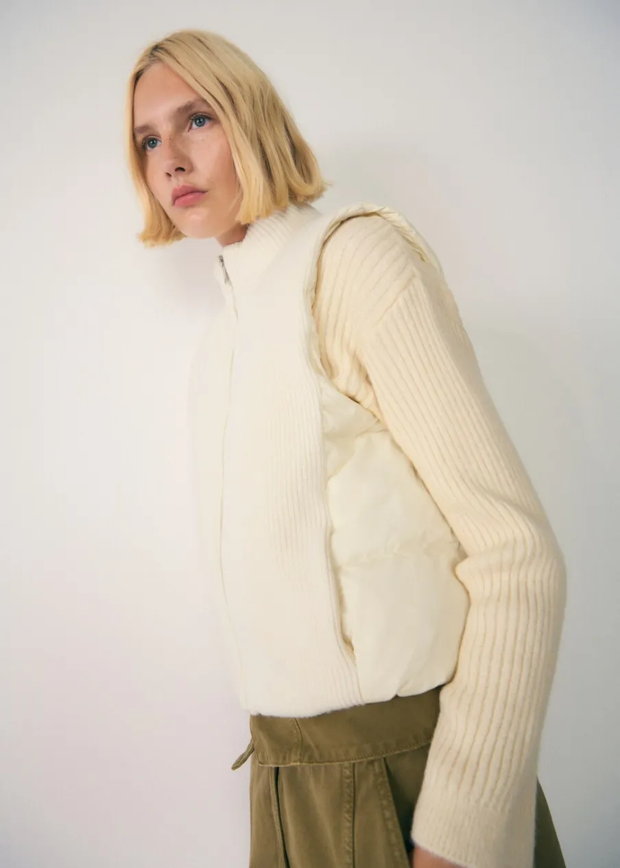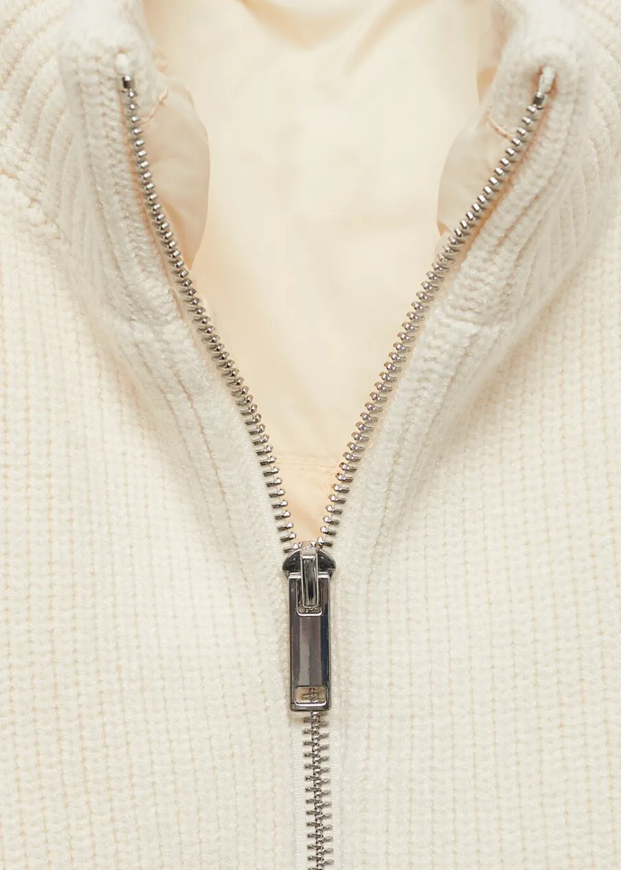 Model pikowany. Golf. Model prosty. Zapięcie na zamek z przodu. Modelka ma 179 cm wzrostu i nosi rozmiar S/36. Tkanina z grubej dzianiny. Model łączony.