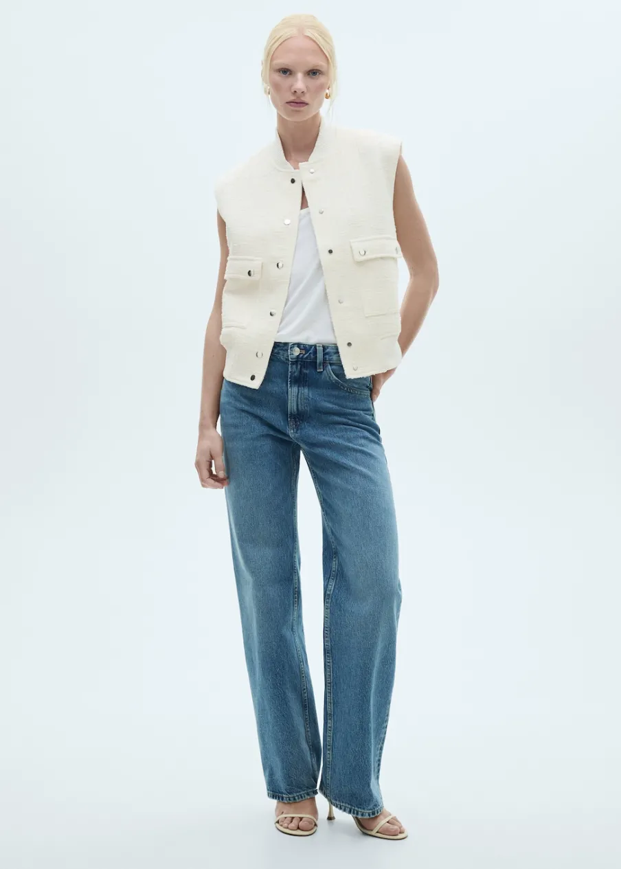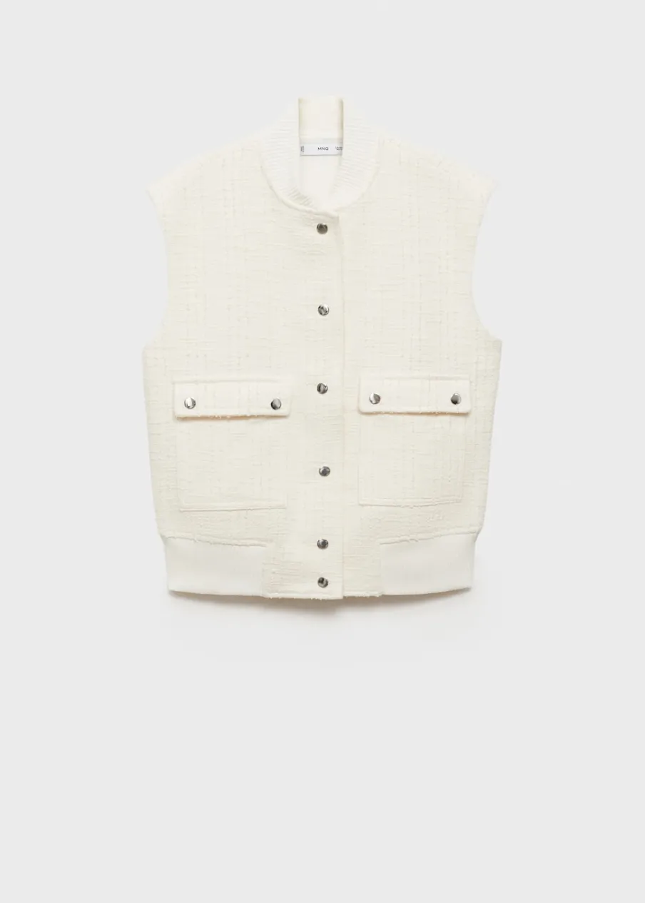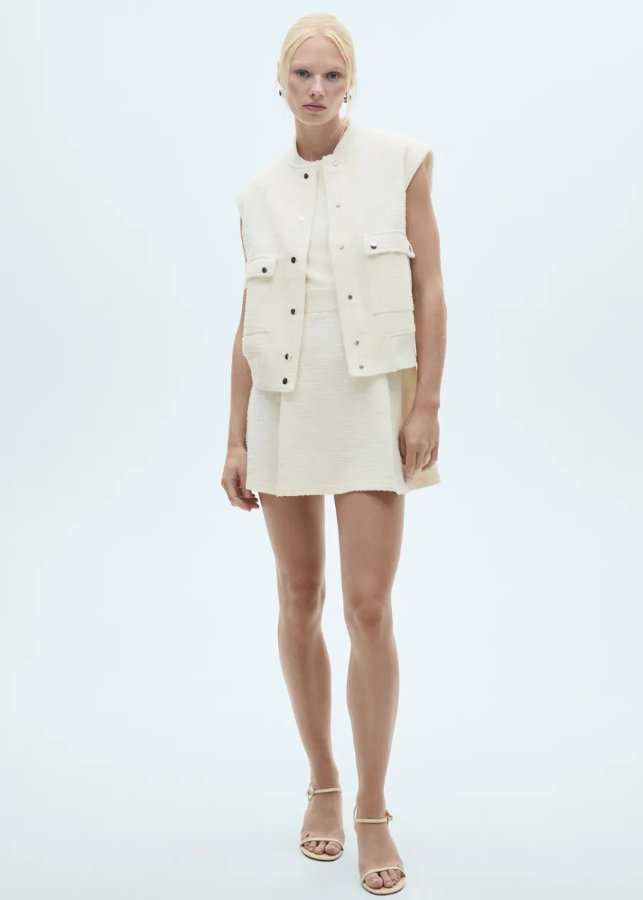 Model prosty. Okrągły dekolt. Bez rękawów. Zapinane kieszenie z patkami. Zapięcie z przodu na guziki. Wewnętrzna podszewka. Modelka ma 178 cm wzrostu i nosi rozmiar S/36. Total look. Tkanina mieszanka bawełny. Teksturowana tkanina.