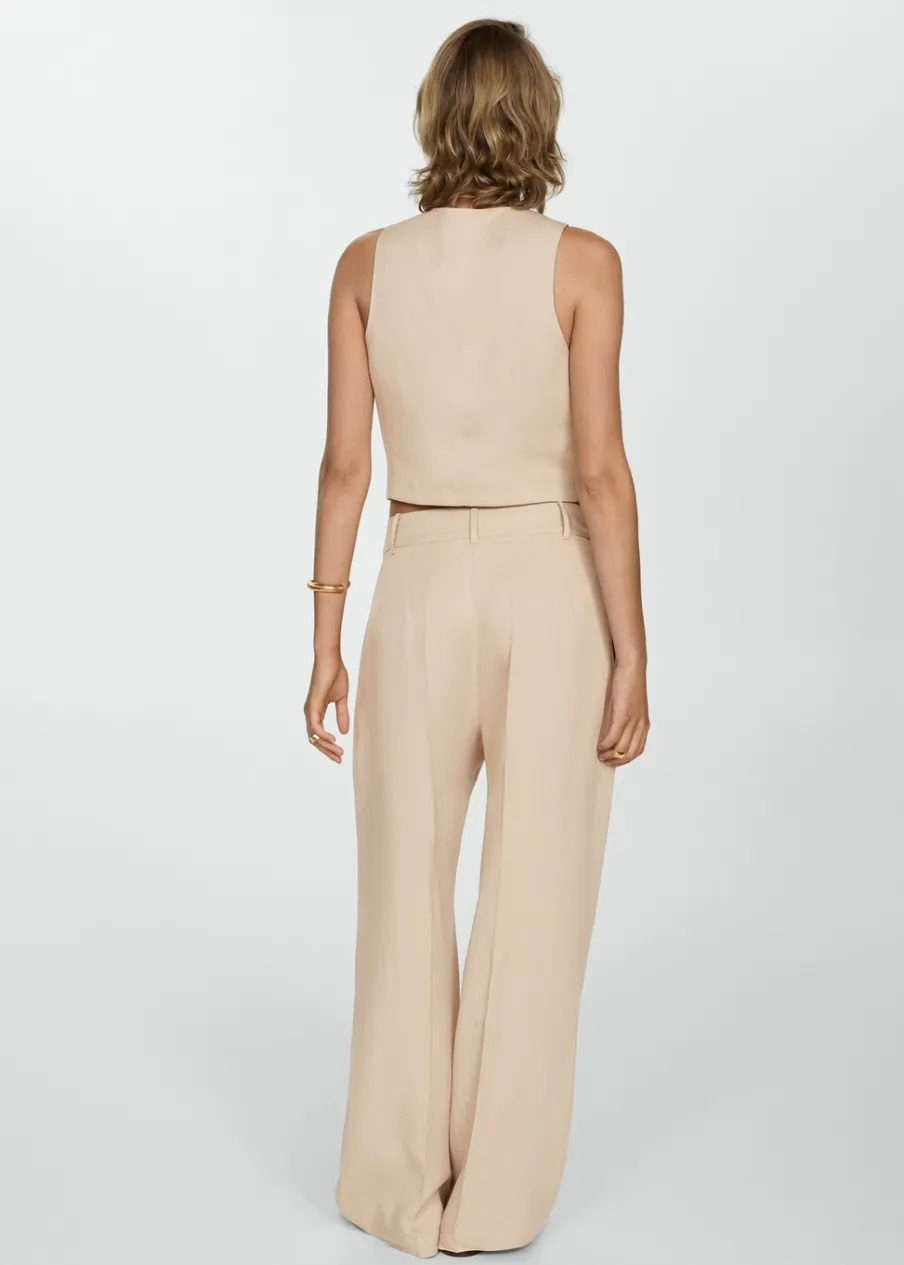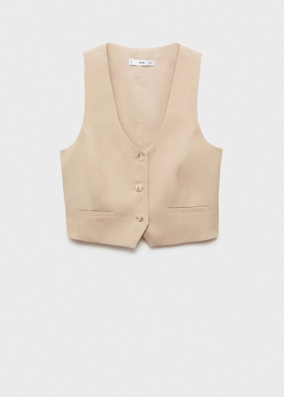 Tkanina mieszana z lnu i lyocellu. Model prosty. Deseń crop. Dekolt V. Szerokie ramiączka. Zapięcie z przodu na guzik. Total look.