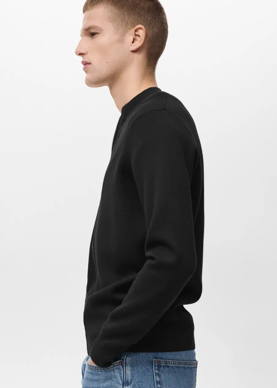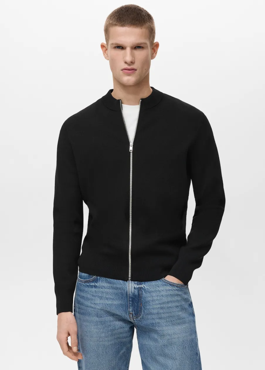 Krój regular. Dzianina o średniej grubości. Zapięcie na suwak. Ściągaczowy kołnierz. Długi rękaw. Prosty dół. Model ma 185 cm wzrostu i nosi rozmiar M.