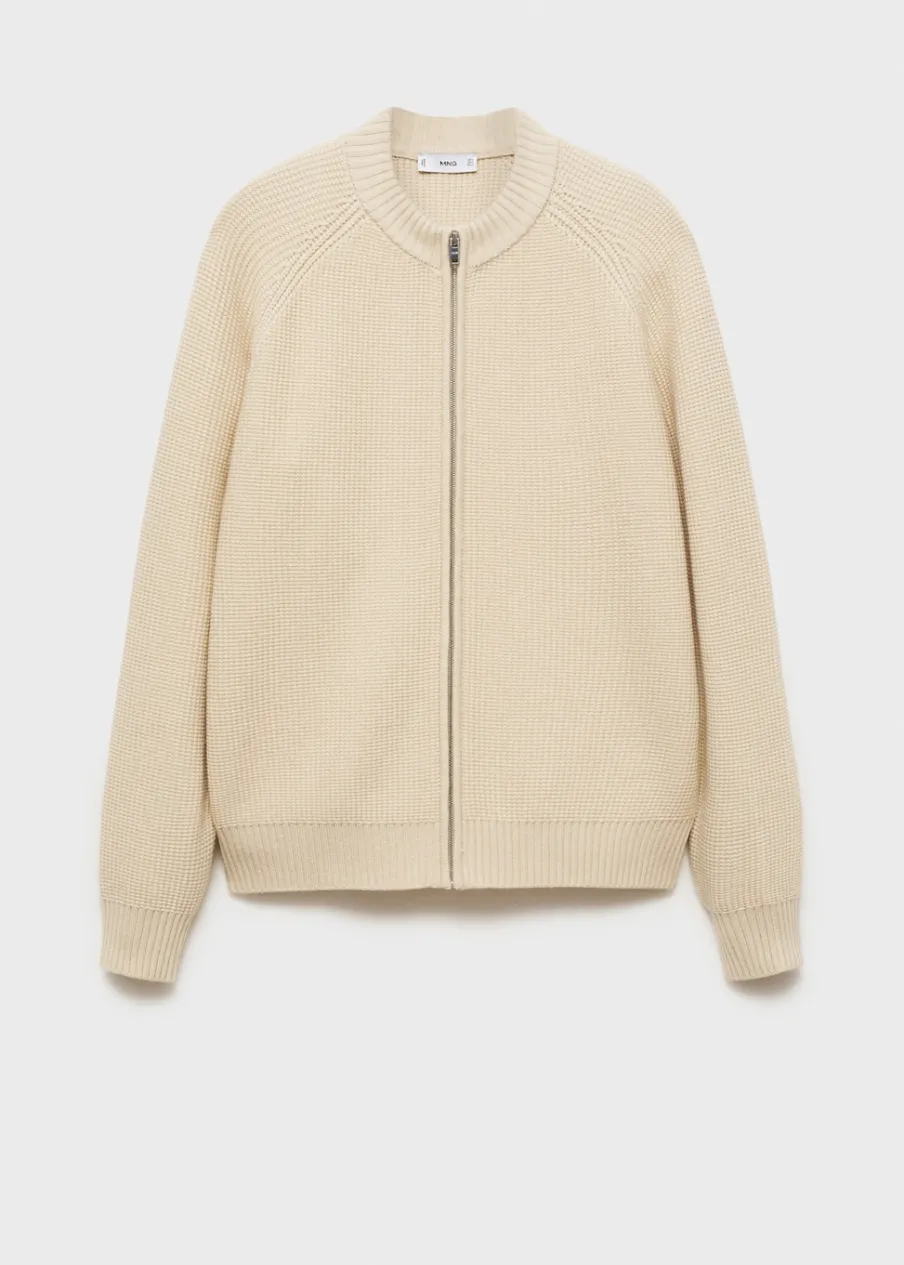 OpisKrój regular. Tkanina z grubej dzianiny. Strukturalna tkanina. Zapięcie na suwak. Ściągaczowe wykończenia. Mode…