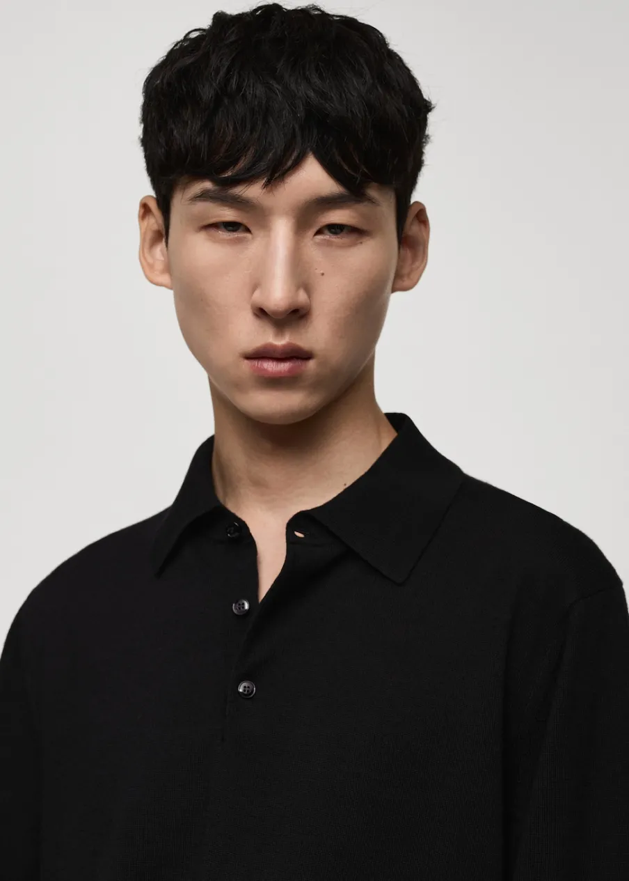 ESSENTIALS: Made to last. Kolory camel i mchowa zieleń dostępne tylko online. Krój regular. 100% wełna merynosowa. Kołnierzyk polo z zapięciem na guziki. Długi rękaw z elastycznymi mankietami. Prosty dół. Kontrastowe prążkowane wykończenie na dekolcie, rękawach i u dołu. Model ma 190 cm wzrostu i nosi rozmiar M. Dzianina o średniej grubości.