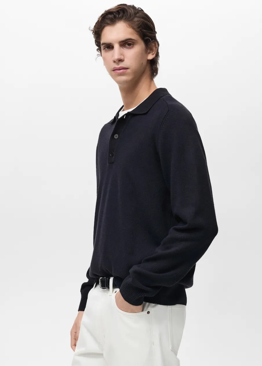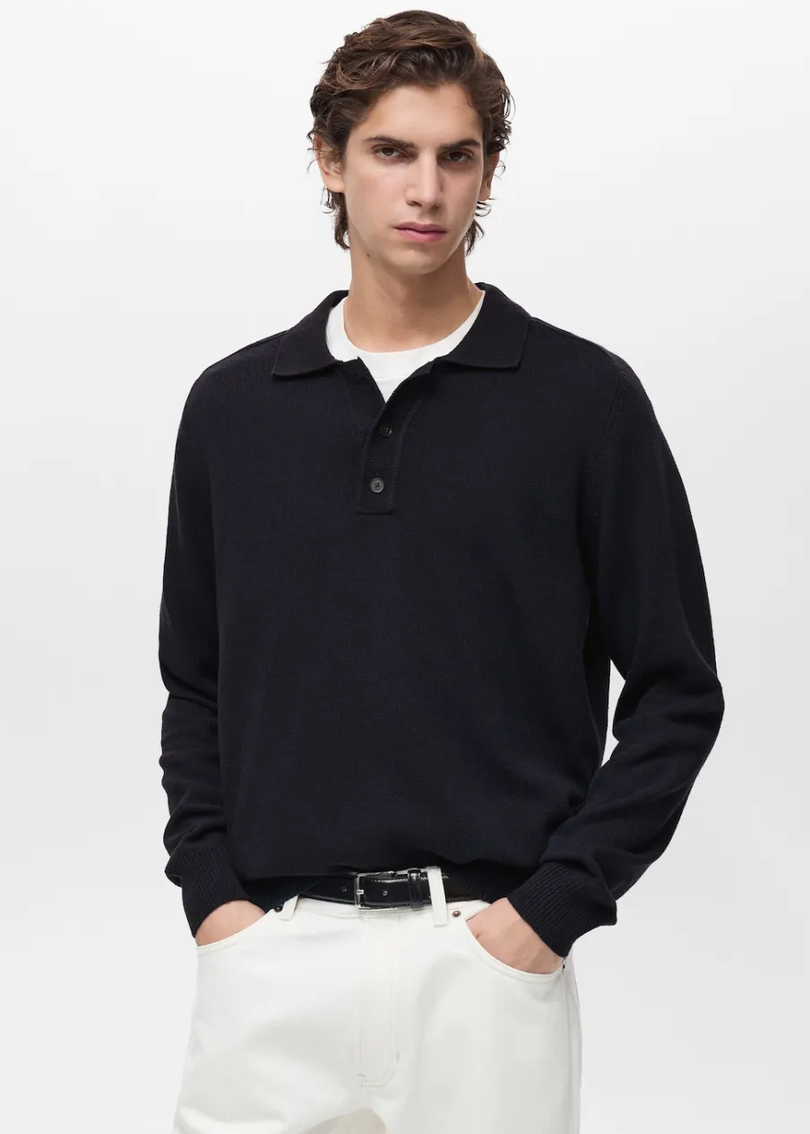 ESSENTIALS: Made to last. Krój regular. Tkanina mieszanka bawełny. Dzianina o średniej grubości. Kołnierzyk polo z zapięciem na guziki. Długi rękaw z elastycznymi mankietami. Prosty dół. Model ma 190 cm wzrostu i nosi rozmiar M.