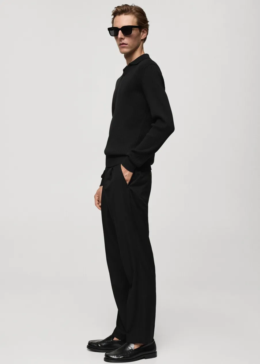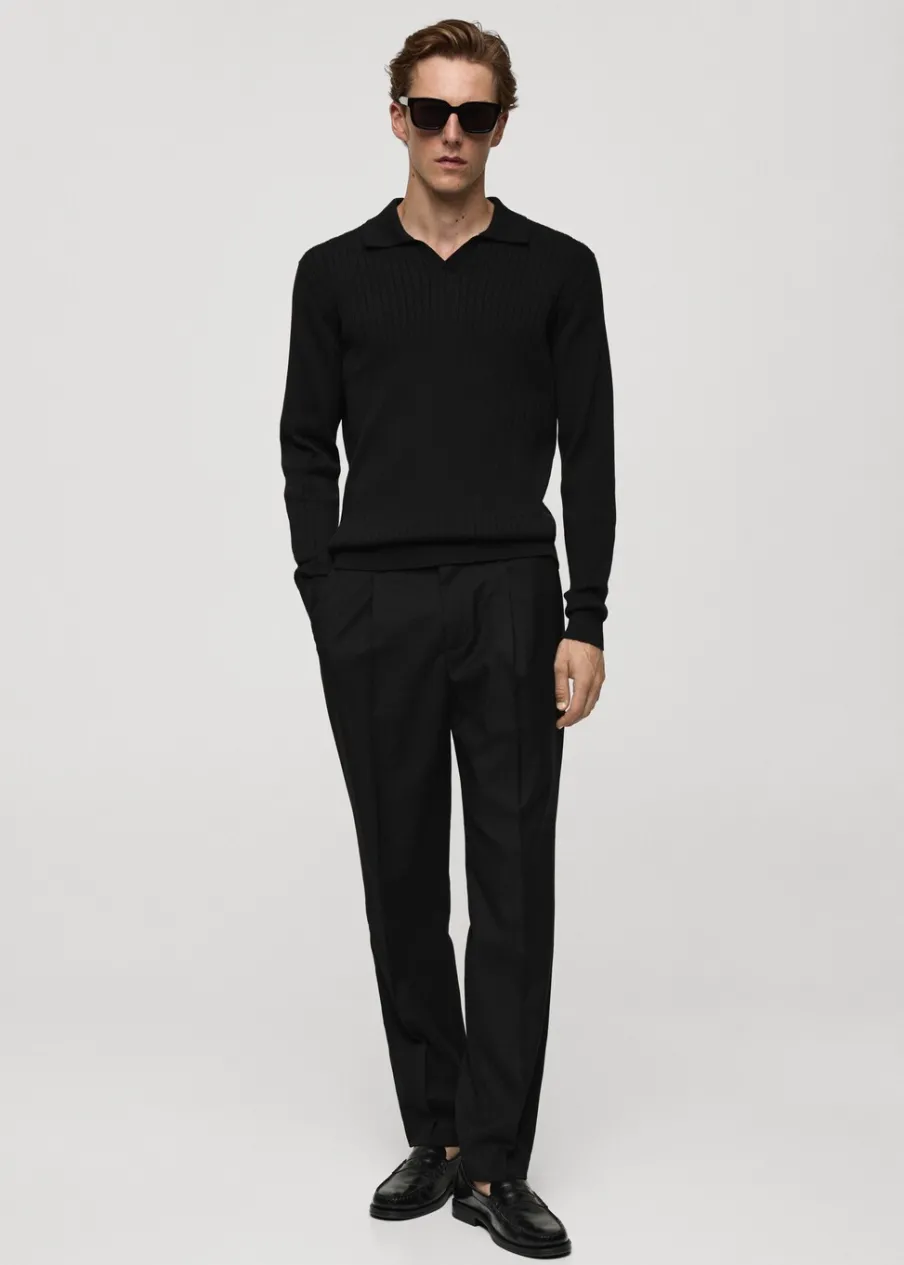 OpisCienka dzianina bawełniana. Krój regular. Prążkowana tekstura. Kołnierzyk polo bez guzików. Długi rękaw. Pro…