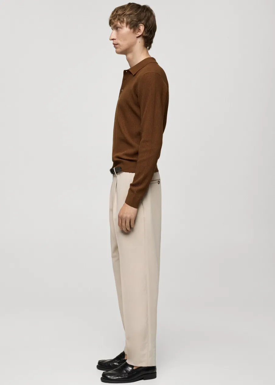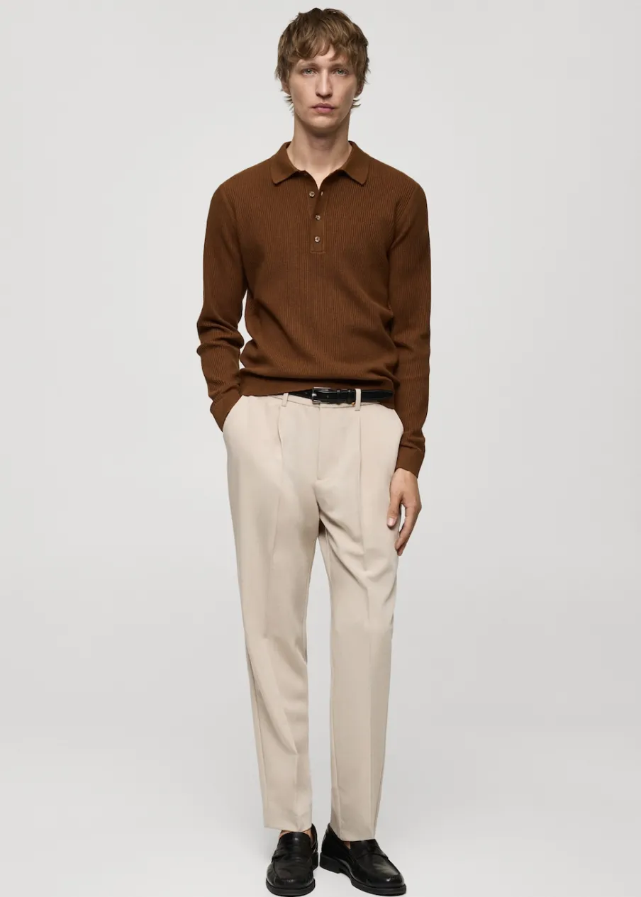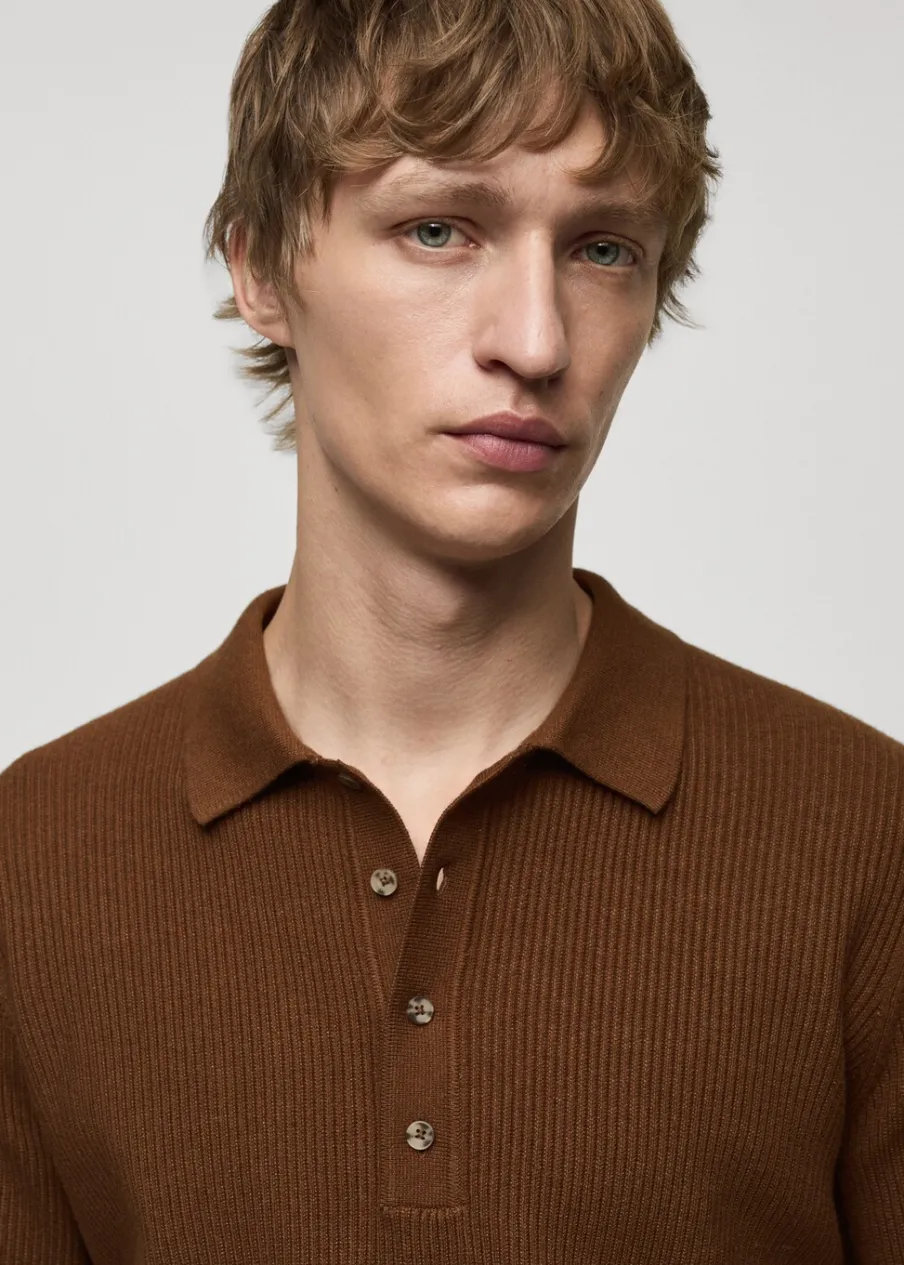 OpisKrój regular. Tkanina mieszanka bawełny. Tkanina z cienkiej dzianiny. Model ściągaczowy. Kołnierzyk polo z zapi…