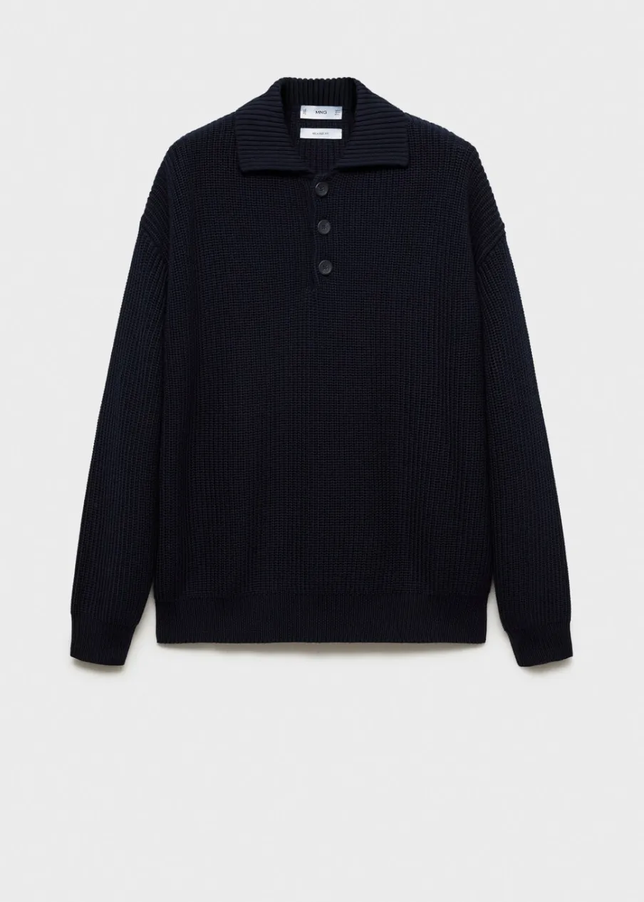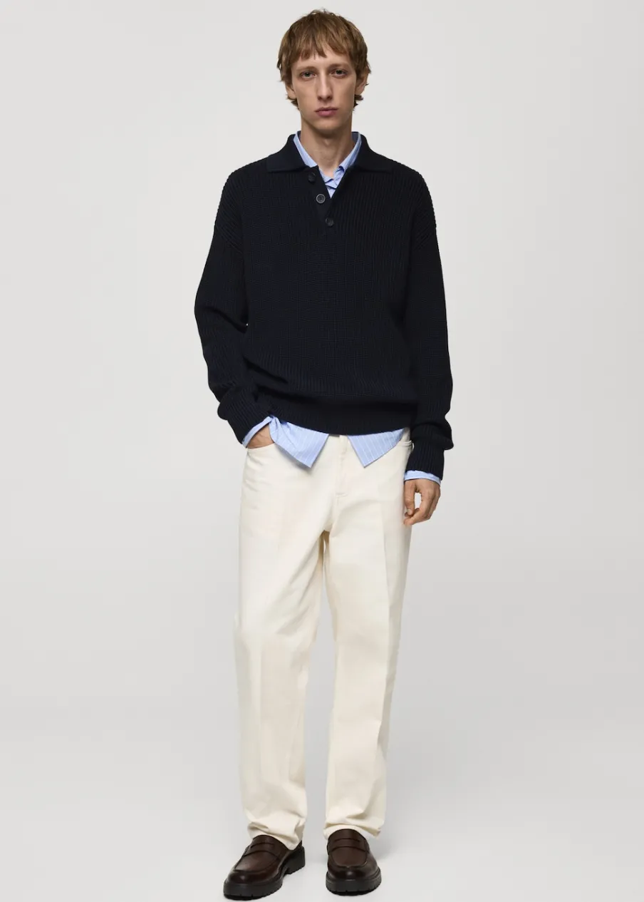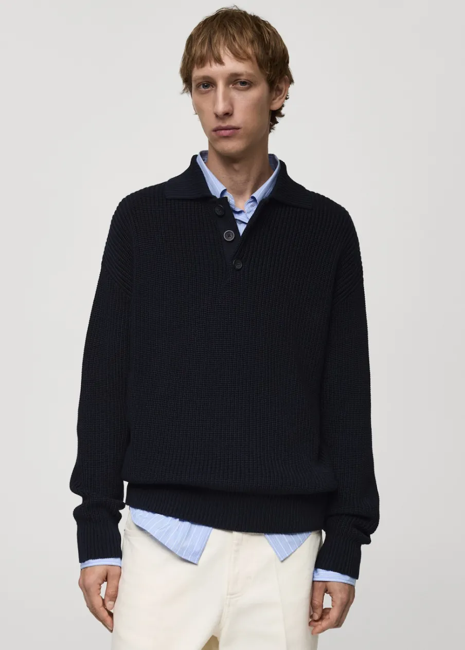 Relaxed fit. 100% bomull. Model ściągaczowy. Kołnierzyk polo z zapięciem na guziki. Prosty dół. Model ma 190 cm wzrostu i nosi rozmiar M. Tkanina z grubej dzianiny. Długi rękaw wykończony ściągaczem.