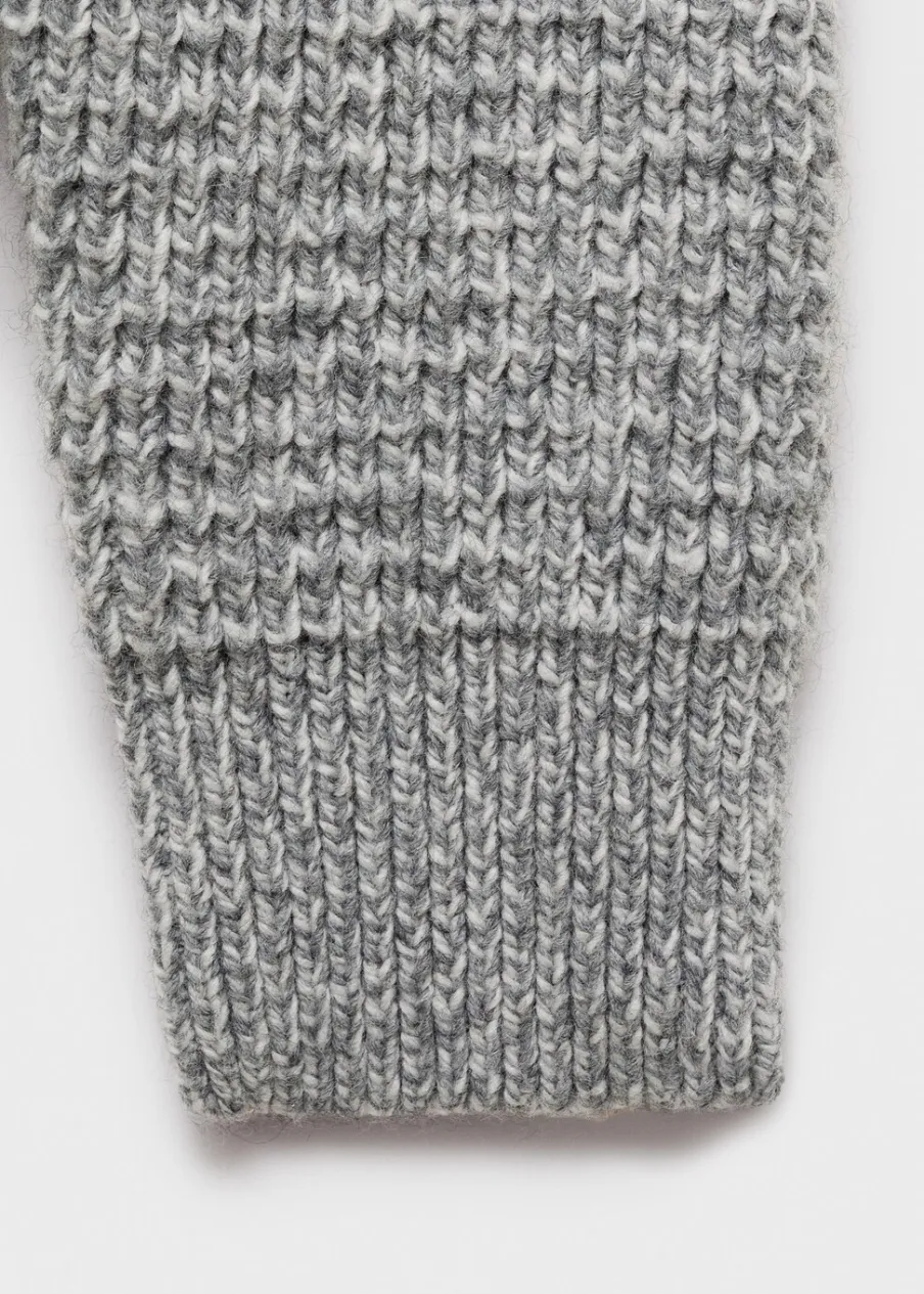 OpisTkanina mieszana z włoskiej wełny. Deseń melanżowy. Gruba dzianina z warkoczami. Długi rękaw. Kołnierzyk polo…