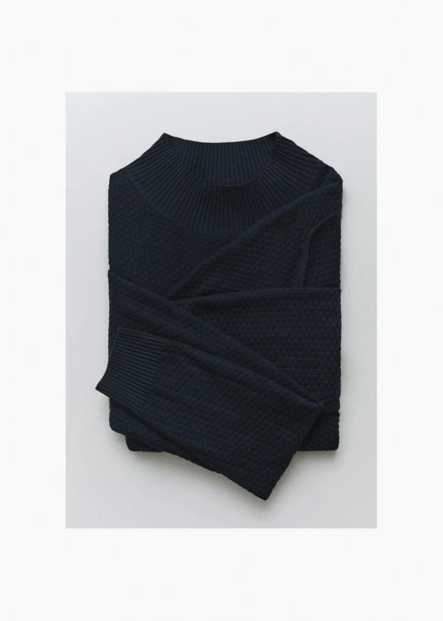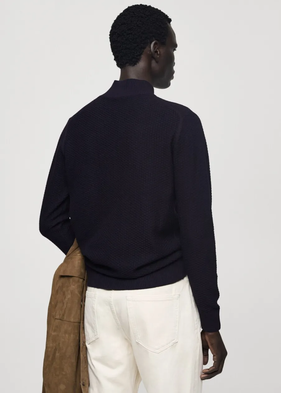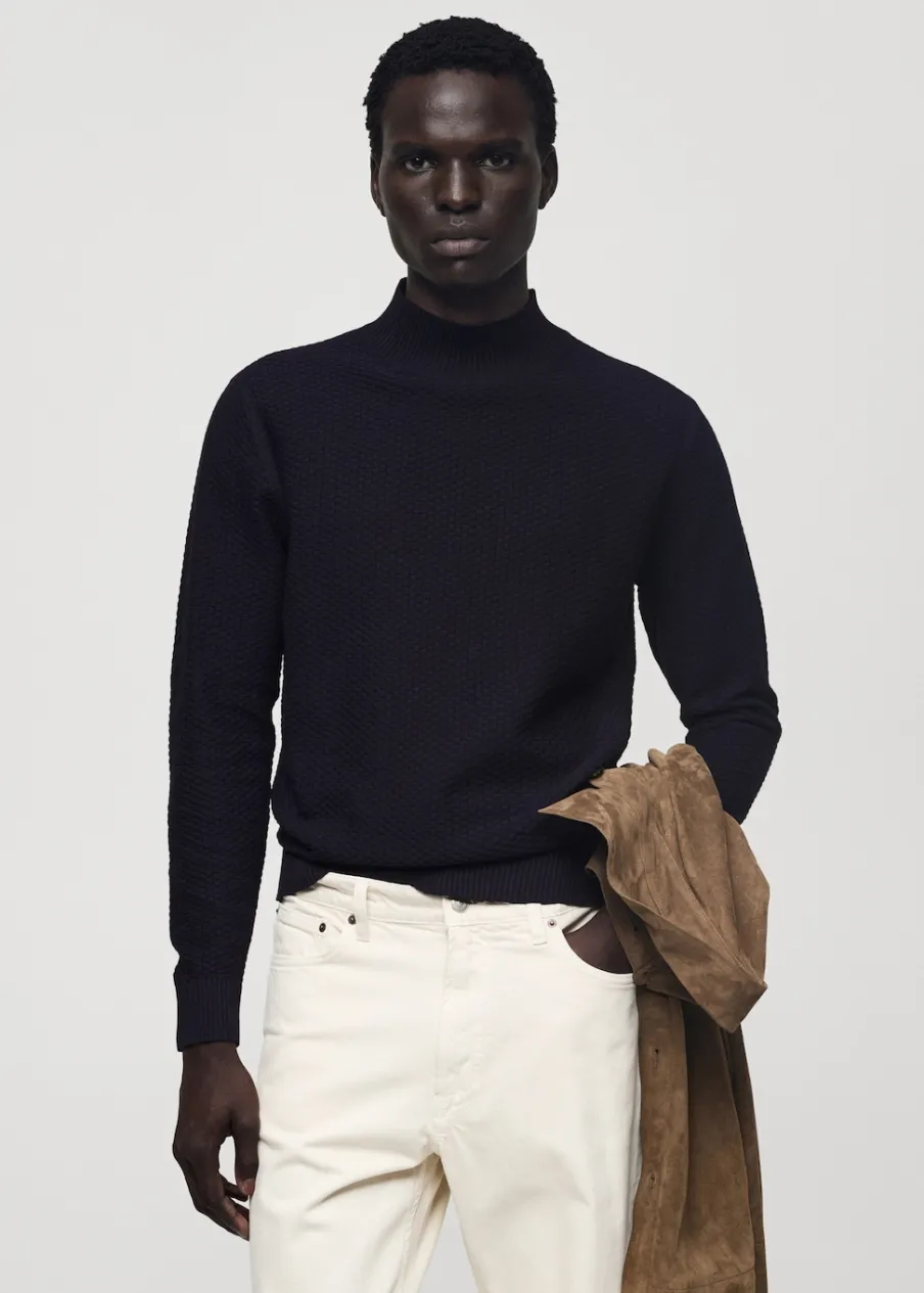 Krój regular. Tkanina mieszanka bawełny. Tkanina z cienkiej dzianiny. Półgolf. Struktura cuadrillé. Ściągaczowe wykończenia. Model ma 185 cm wzrostu i nosi rozmiar M.