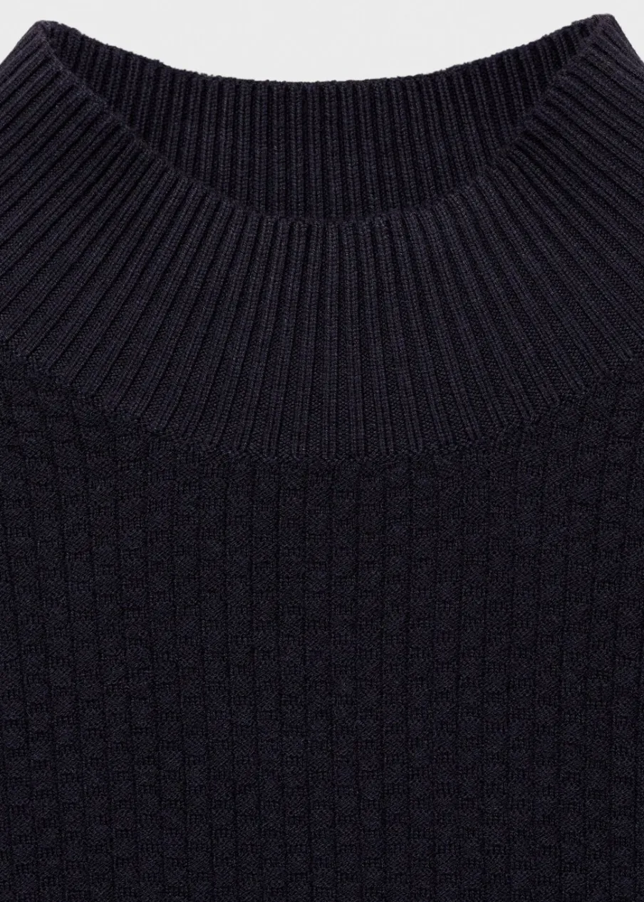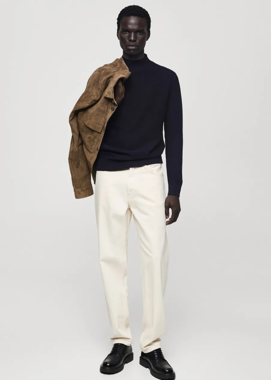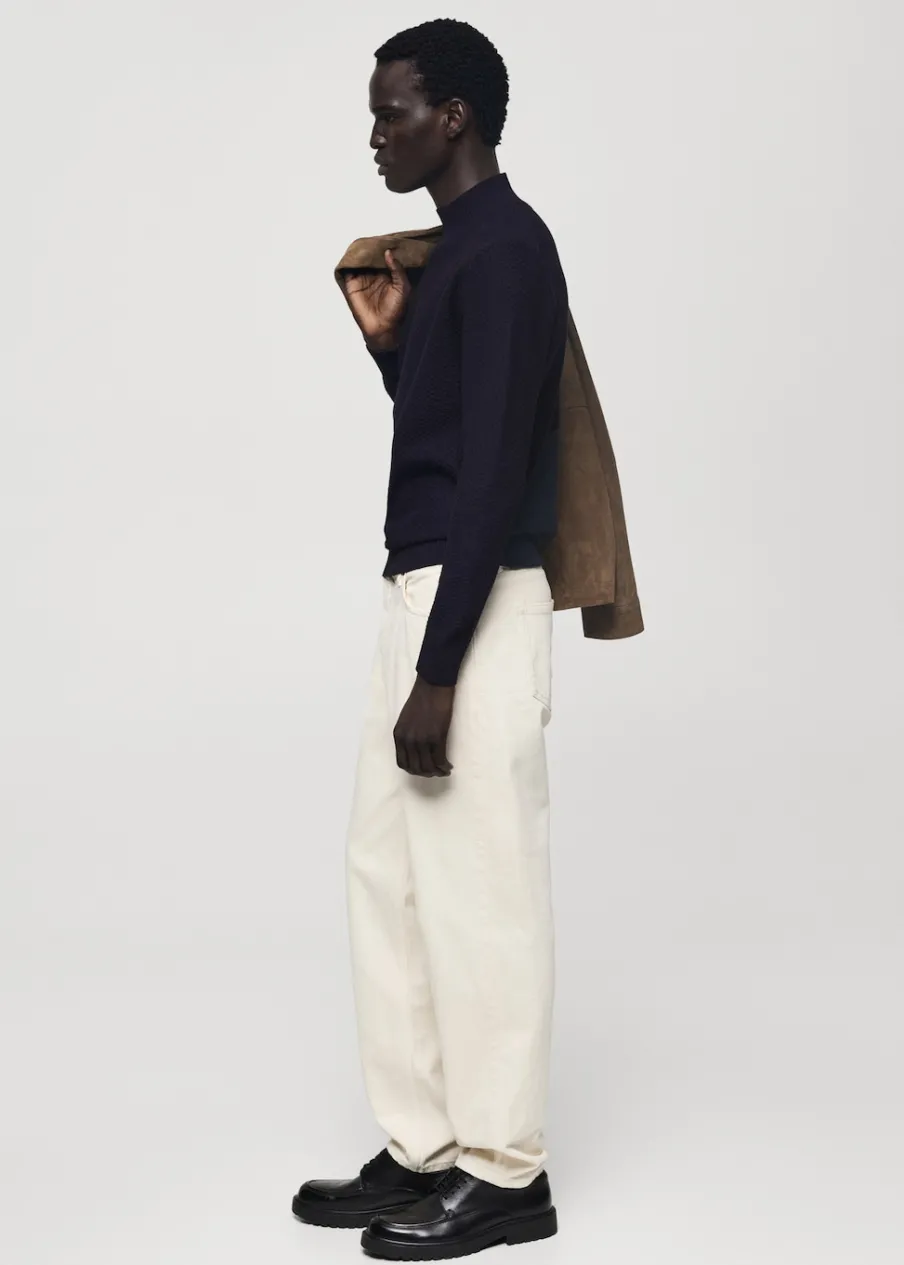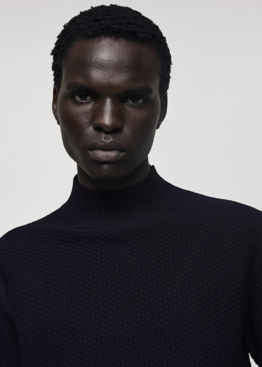 Krój regular. Tkanina mieszanka bawełny. Tkanina z cienkiej dzianiny. Półgolf. Struktura cuadrillé. Ściągaczowe wykończenia. Model ma 185 cm wzrostu i nosi rozmiar M.