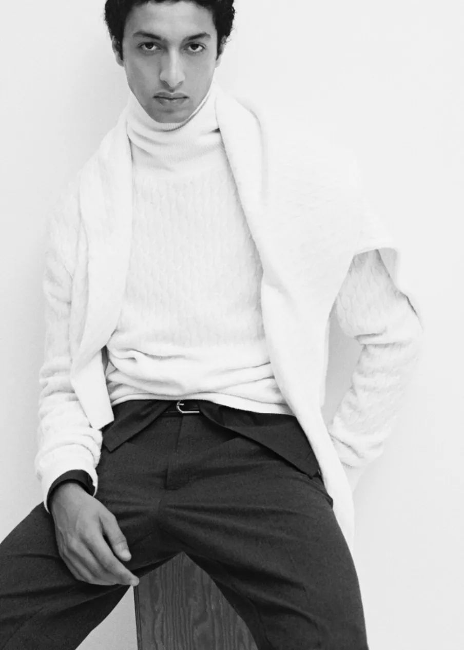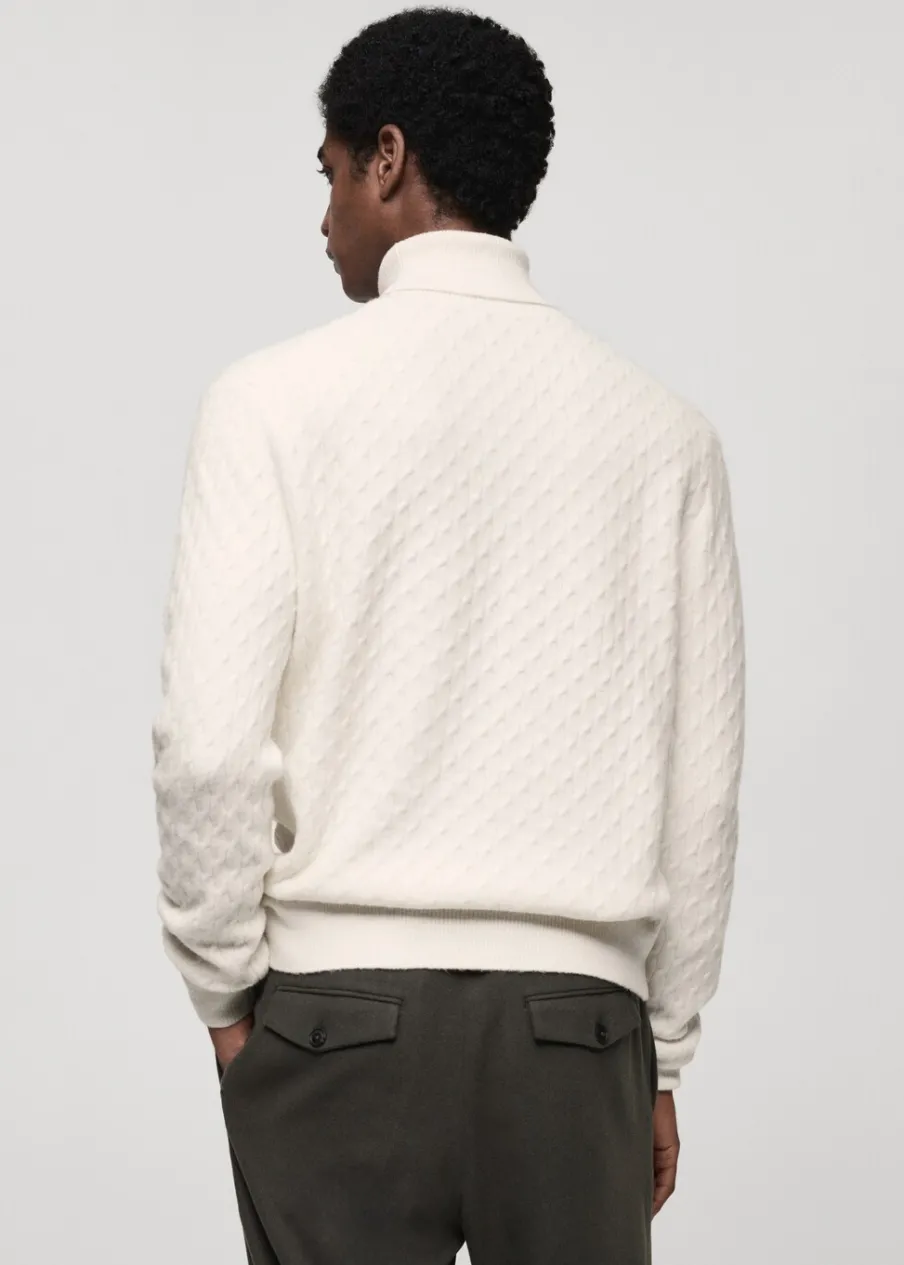 OpisKrój regular. Golf. Dzianina strukturalna. Ściągaczowe wykończenia. Model ma 185 cm wzrostu i nosi rozmiar M.