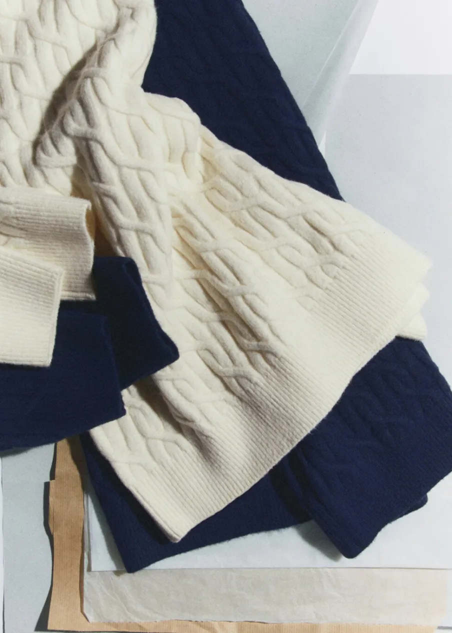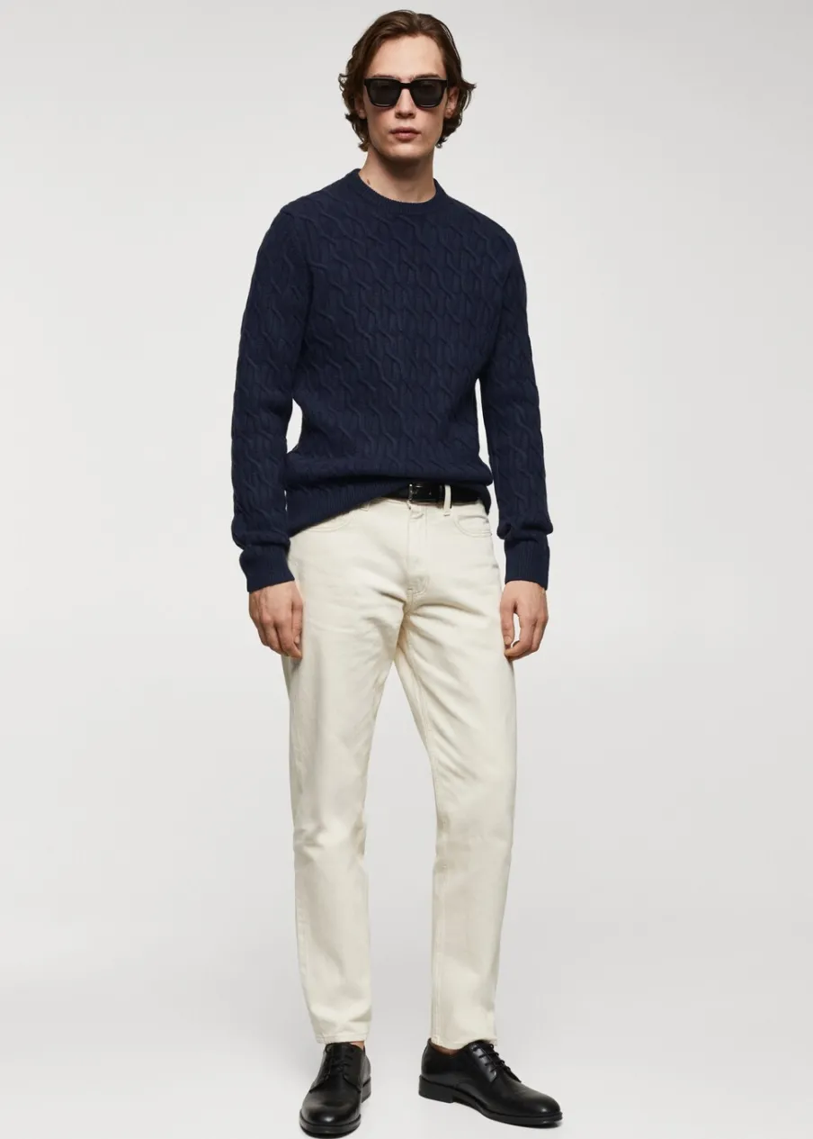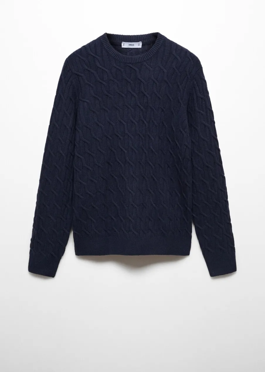 Dzianina średniej grubości. Model pleciony. Okrągły dekolt. Długi rękaw. Prosty dół. Model ma 190 cm wzrostu i nosi rozmiar M. Prążkowane wykończenie na dekolcie, rękawach i u dołu.
