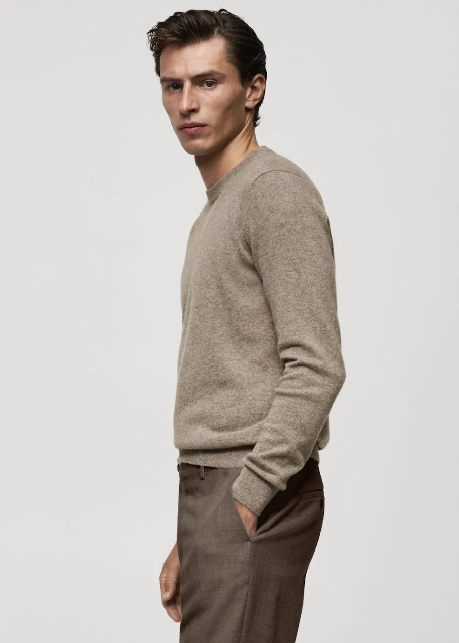 Kolekcja Selection. Kaszmirowa tkanina. Krój regular. Dzianina średniej grubości. Okrągły dekolt. Długi rękaw z elastycznymi mankietami. Prążkowane wykończenie na dekolcie, rękawach i u dołu. Model ma 185 cm wzrostu i nosi rozmiar M.