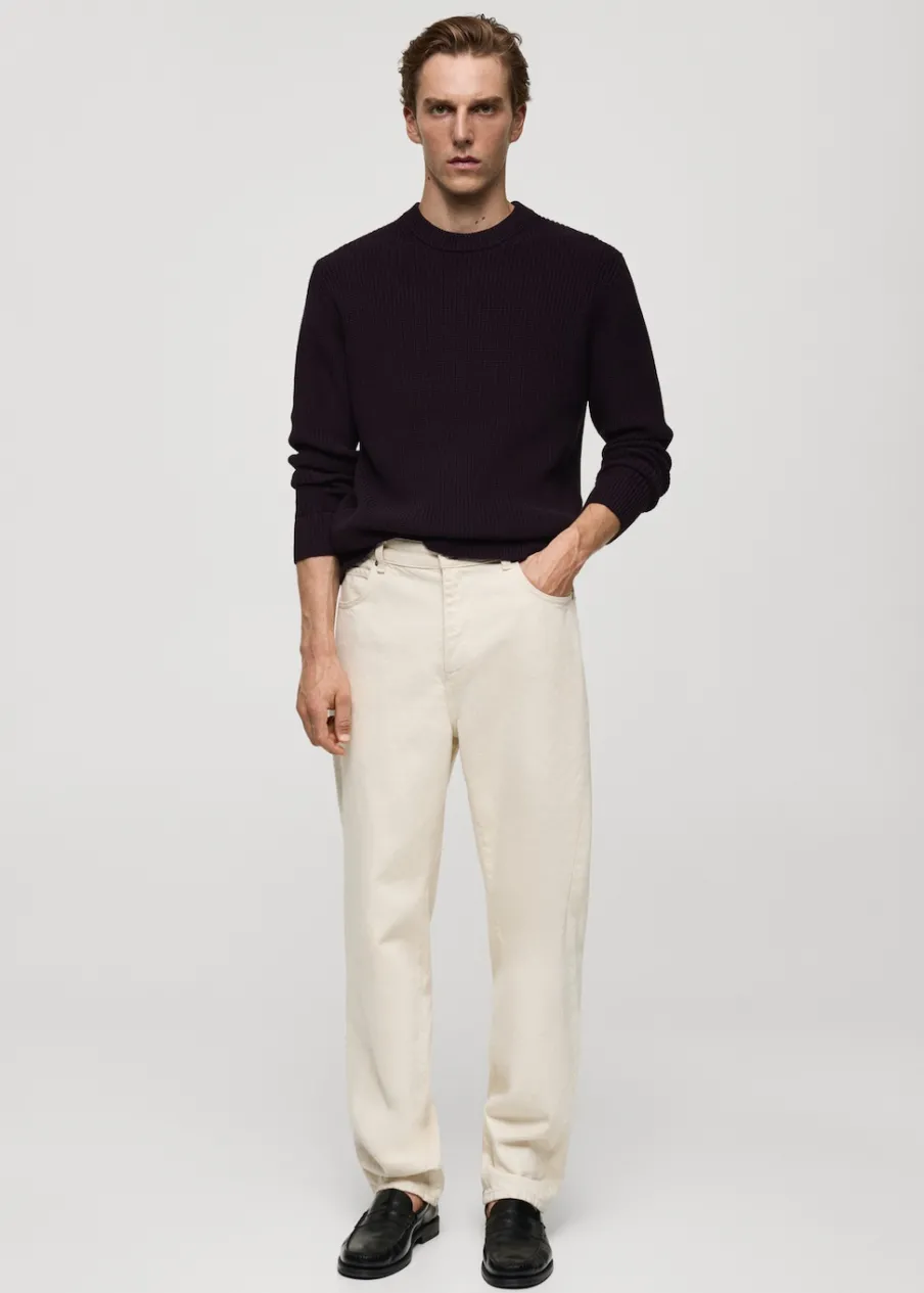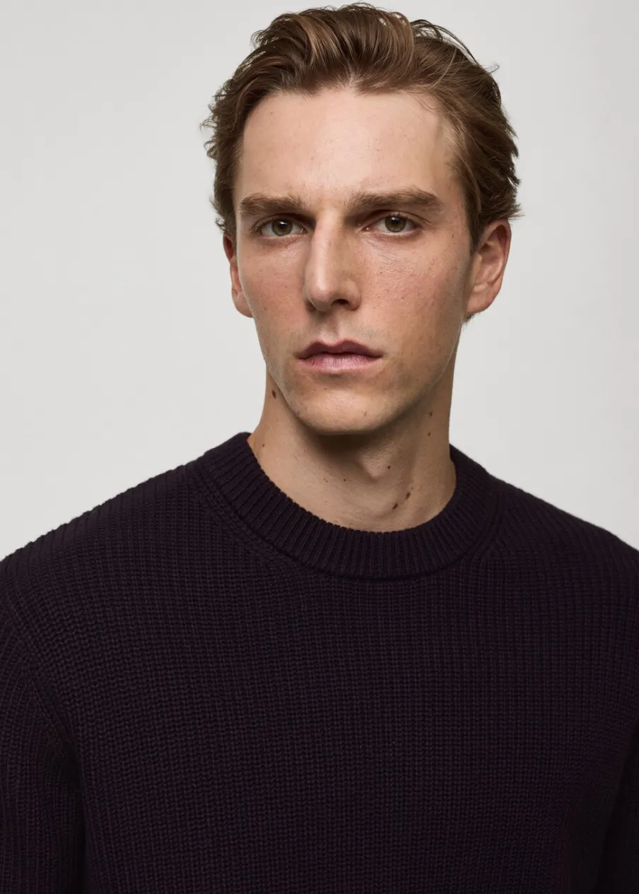 Krój regular. Tkanina mieszanka bawełny. Model ściągaczowy. Dzianina średniej grubości. Okrągły dekolt. Długi rękaw. Prosty dół. Model ma 190 cm wzrostu i nosi rozmiar M. Prążkowane wykończenie na dekolcie, rękawach i u dołu.