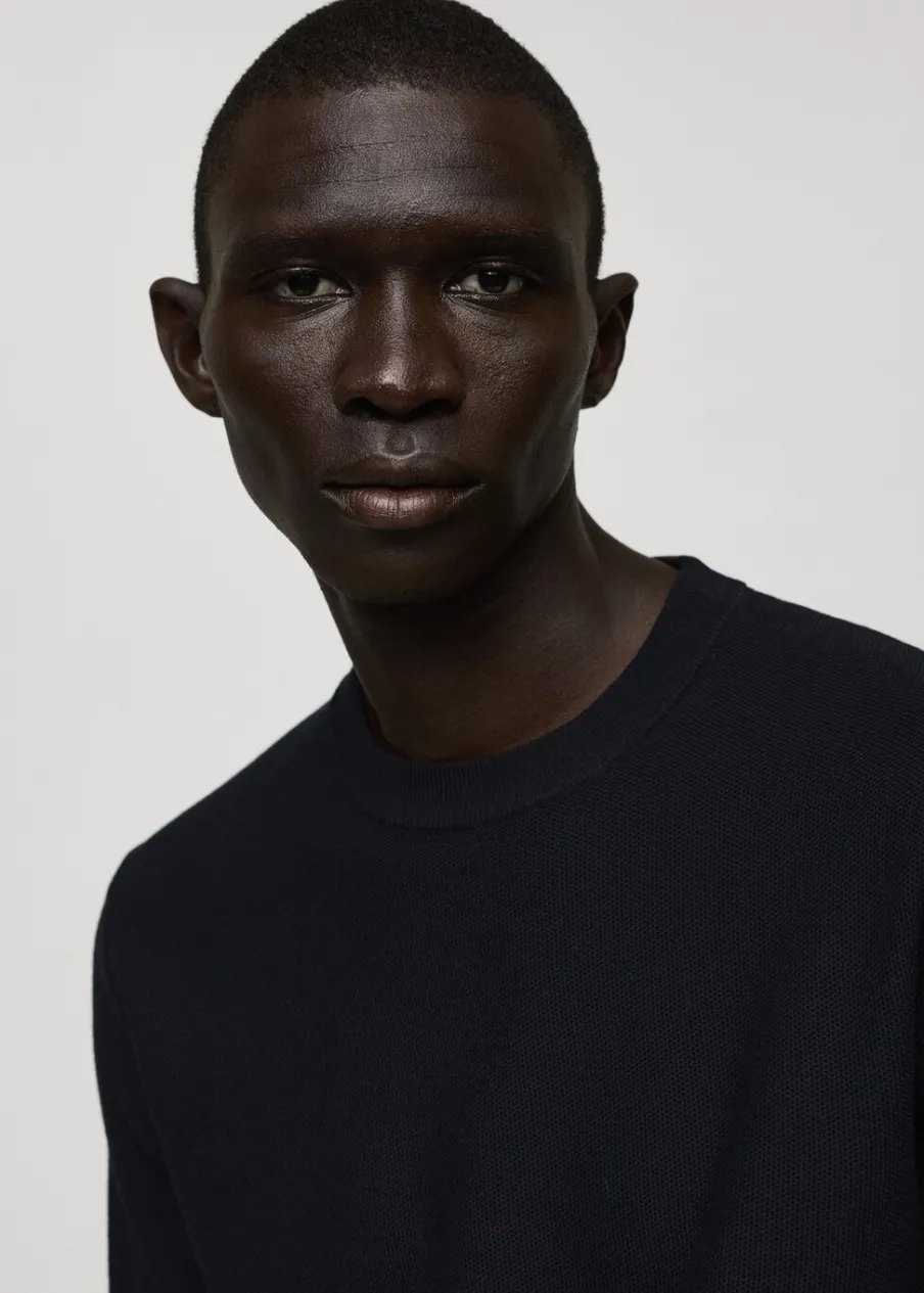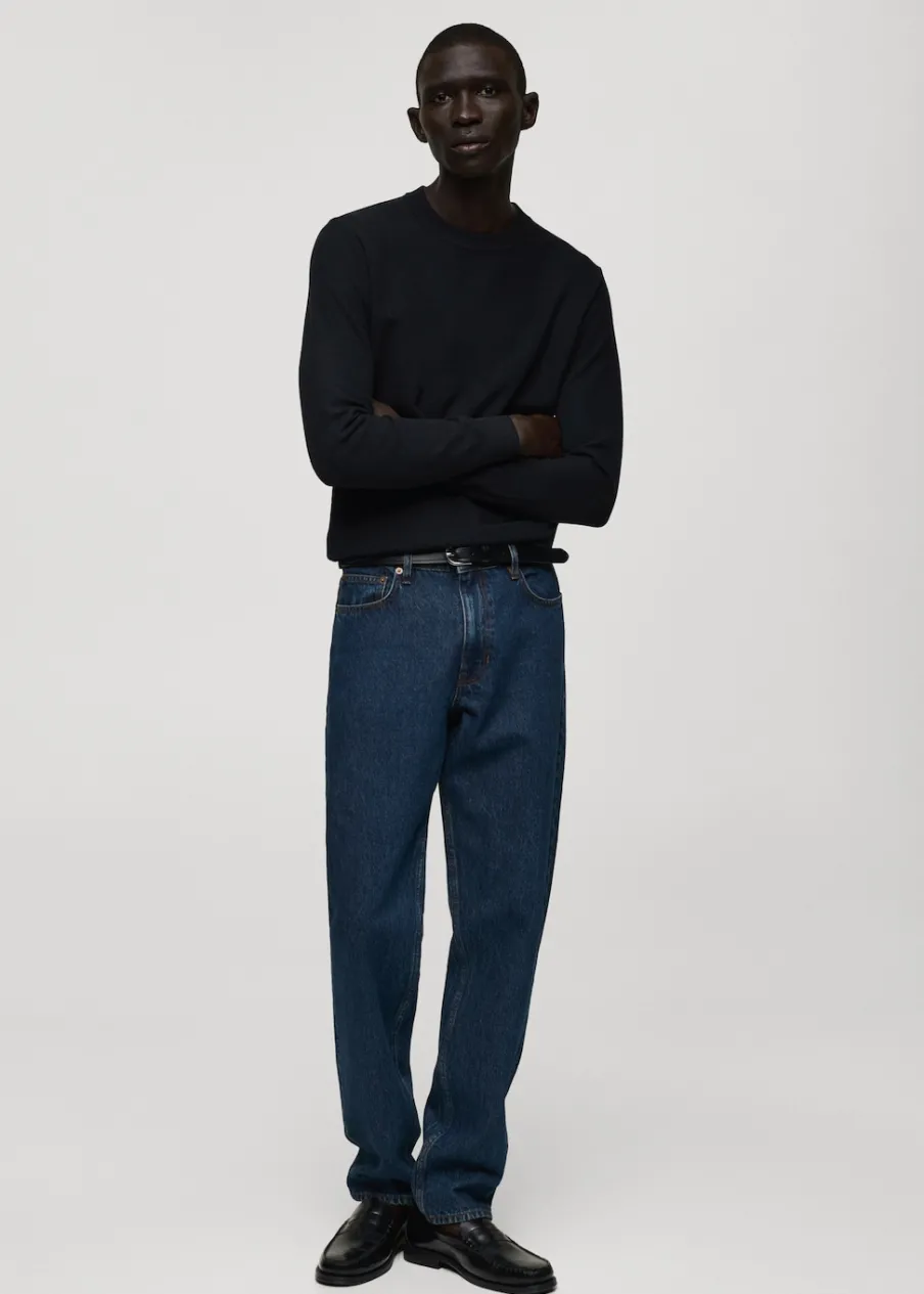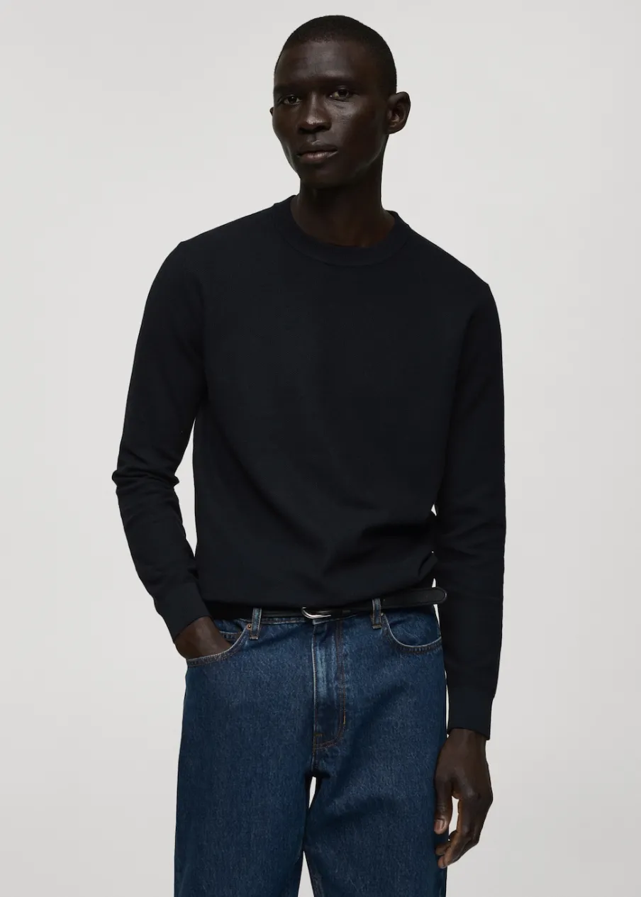 Kolor piaskowy dostępny tylko online. Krój regular. Dzianinowa tkanina. Okrągły dekolt. Długi rękaw raglanowy. Elastyczne ściągacze. Prosty dół. Model ma 190 cm wzrostu i nosi rozmiar M. Prążkowane wykończenie na dekolcie, rękawach i u dołu.
