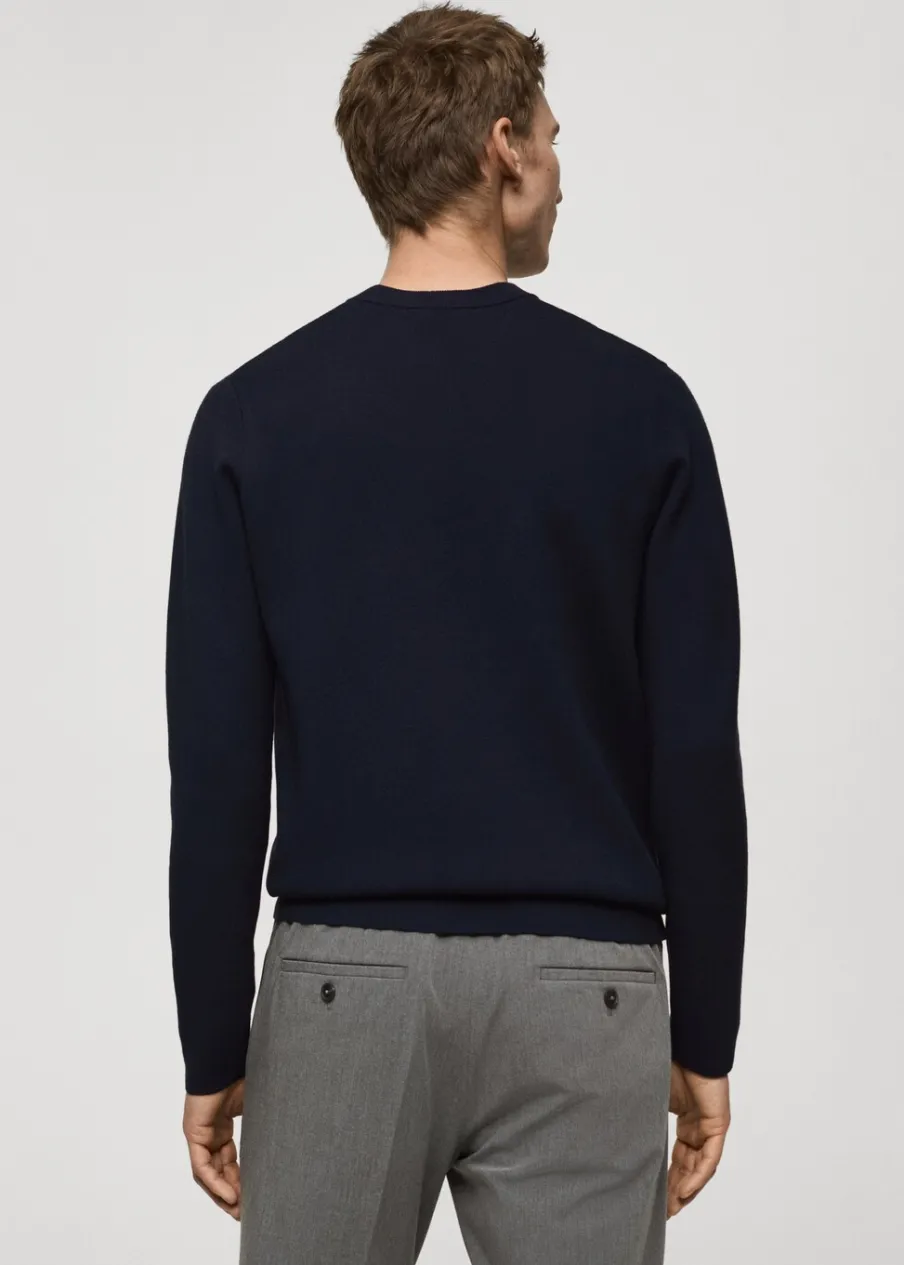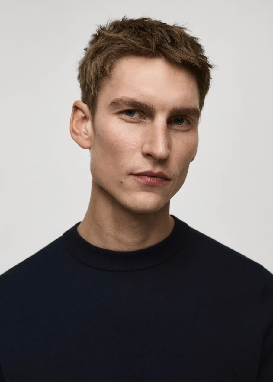Krój regular. Dzianina średniej grubości. Ściągaczowy kołnierz. Długi rękaw. Prosty dół. Model ma 185 cm wzrostu i nosi rozmiar M.