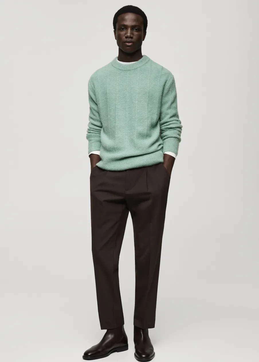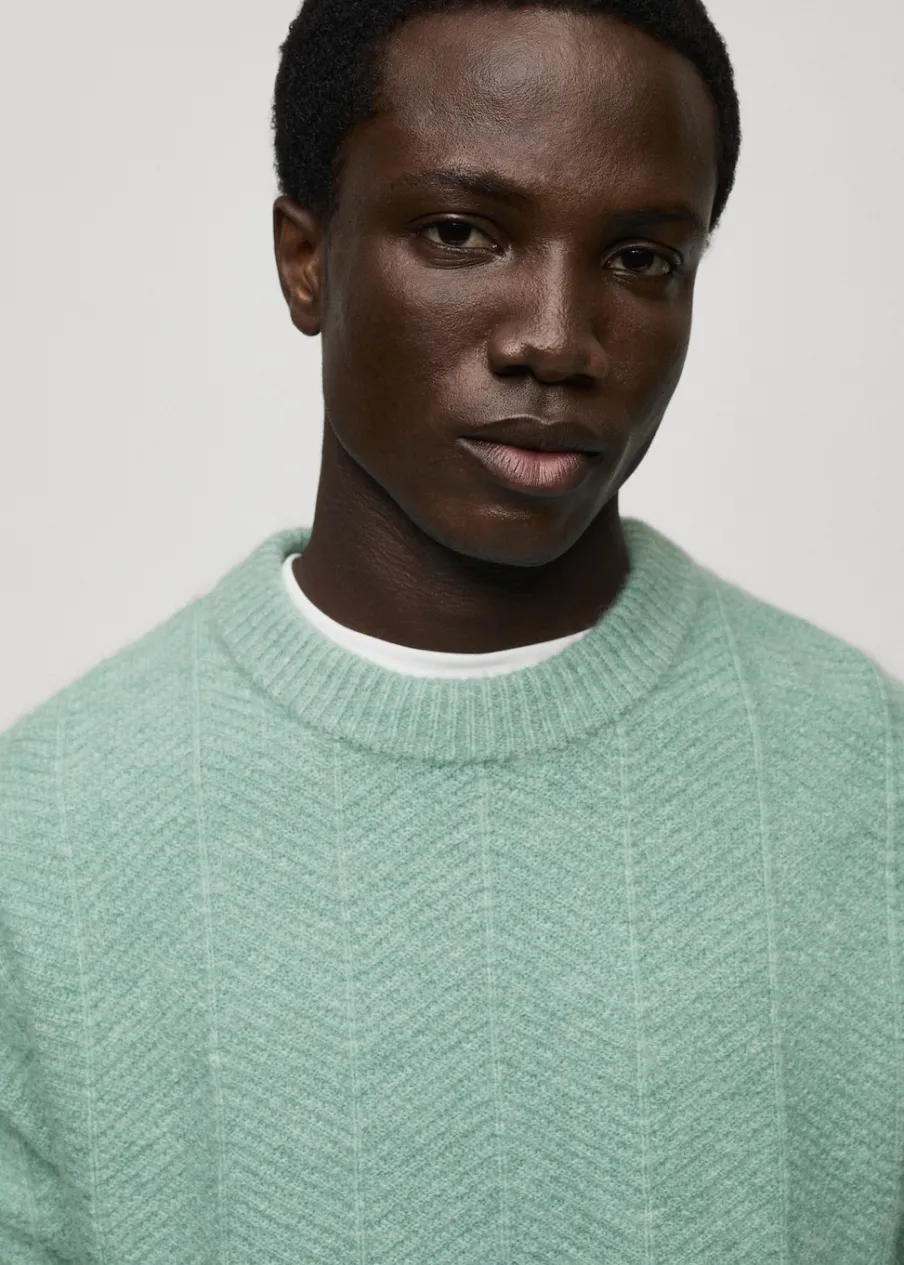 OpisDzianina o średniej grubości. Dzianina strukturalna. Okrągły dekolt. Ściągaczowe wykończenia. Model ma 185 cm…