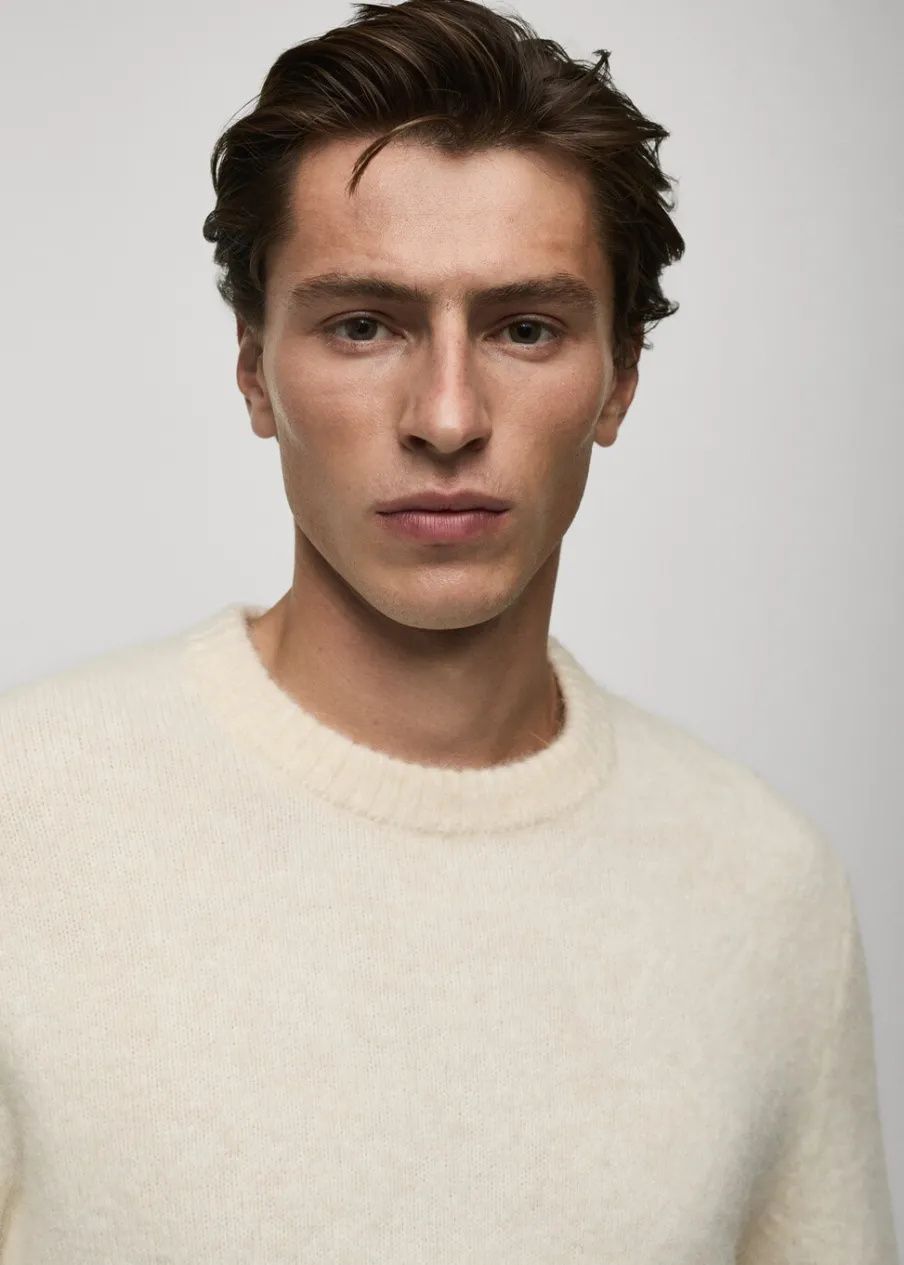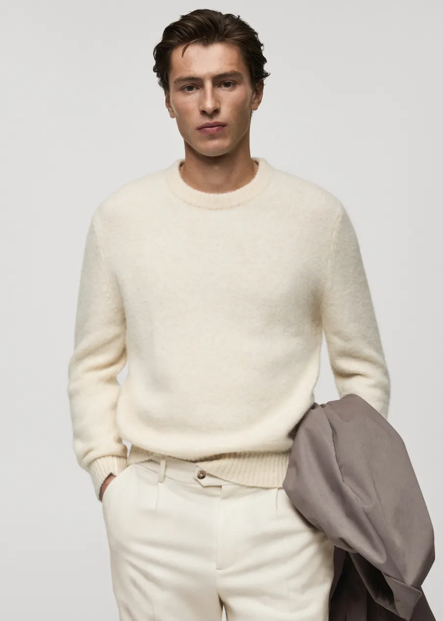 Kolekcja Selection. Krój regular. Tkanina mieszana z wełny i alpaki. Dzianina o średniej grubości. Okrągły dekolt. Długi rękaw z elastycznymi mankietami. Kontrastowe prążkowane wykończenie na dekolcie, rękawach i u dołu. Model ma 185 cm wzrostu i nosi rozmiar M.