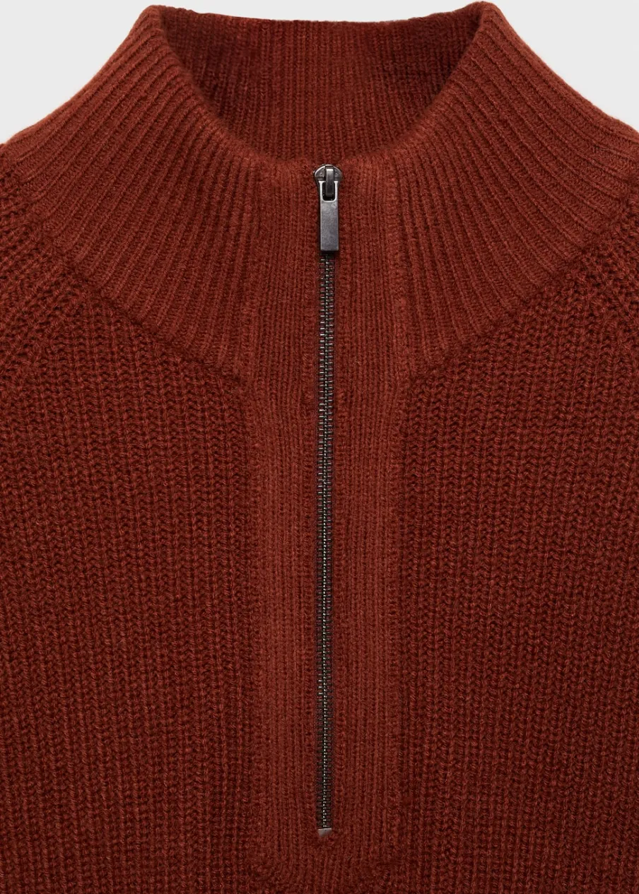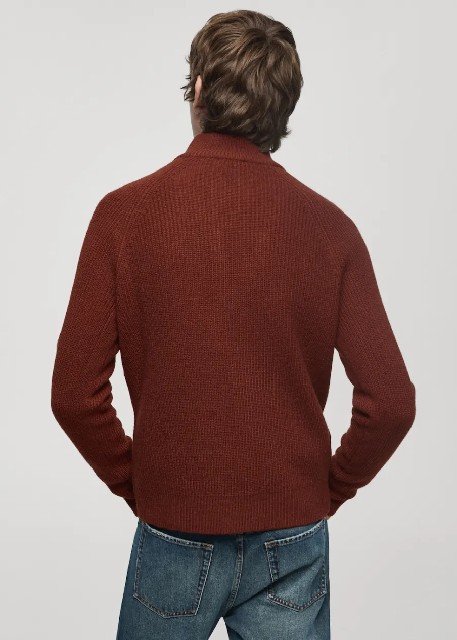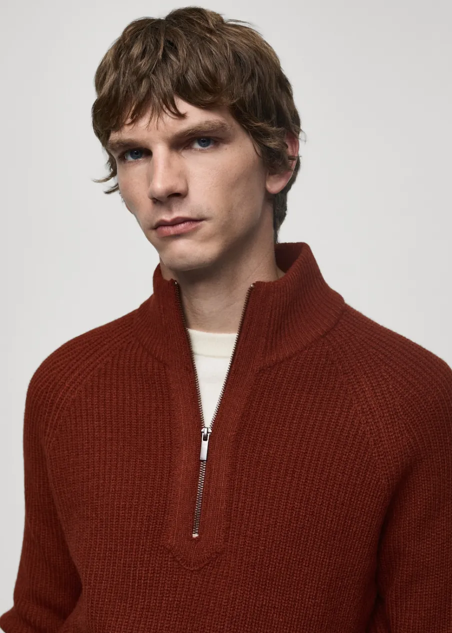 Krój regular. Tkanina mieszanka wełny. Ściągaczowa dzianina. Długi rękaw. Półgolf z zapięciem na zamek. Ściągaczowe wykończenia. Model ma 185 cm wzrostu i nosi rozmiar M.