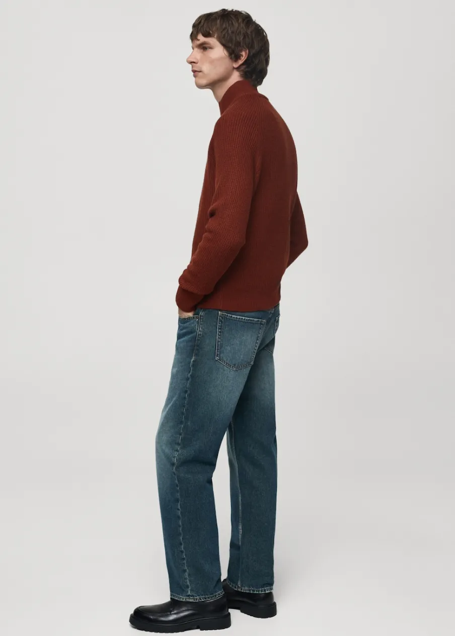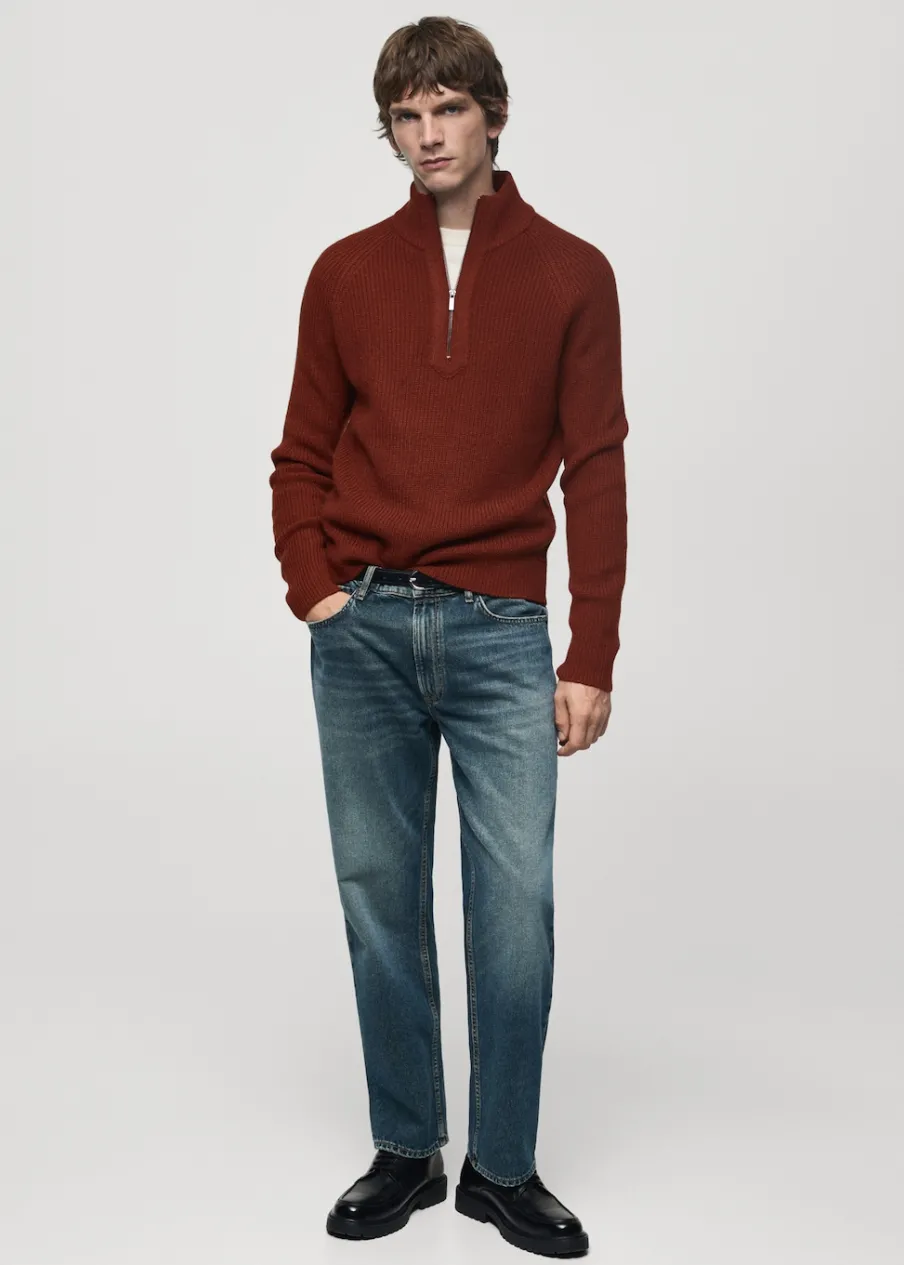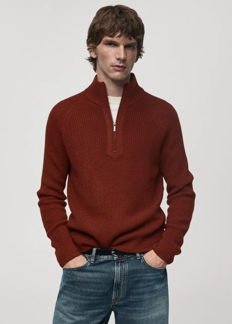 Krój regular. Tkanina mieszanka wełny. Ściągaczowa dzianina. Długi rękaw. Półgolf z zapięciem na zamek. Ściągaczowe wykończenia. Model ma 185 cm wzrostu i nosi rozmiar M.