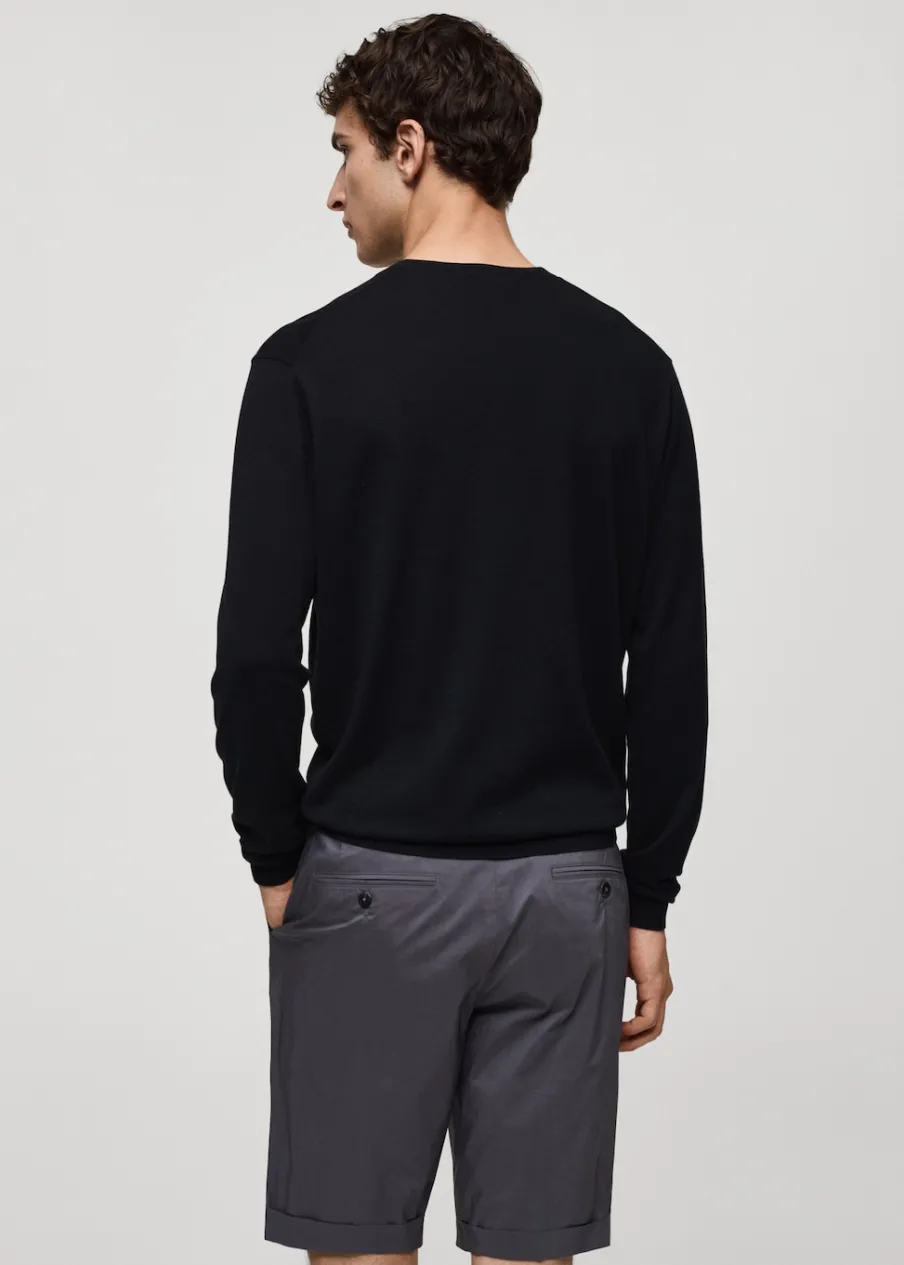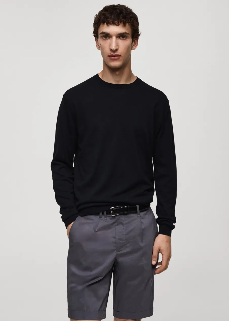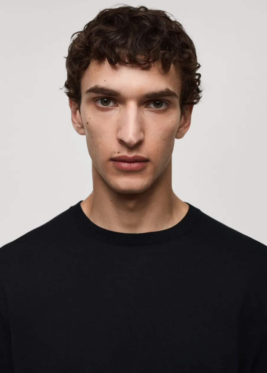 Tkanina z cienkiej dzianiny. Okrągły dekolt. Długi rękaw z elastycznymi mankietami. Prosty dół. Model ma 187 cm wzrostu i nosi rozmiar M. Prążkowane wykończenie na dekolcie, rękawach i u dołu. Tkanina z 100% bawełny.