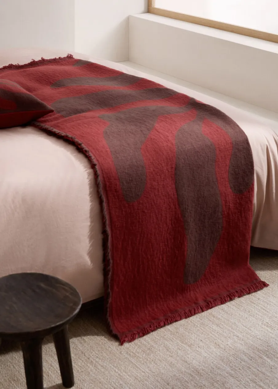 Rozmiar: 130x180cm. Tkanina bawełniana. Wykończenia z frędzlami. Dwukolorowy koc z motywem liścia. Pasuje do innych artykułów z kolekcji. Uszyty z miękkiej i przyjemnej tkaniny, jest doskonałym wyborem, aby wprowadzić naturalny i elegancki akcent do wnętrza.