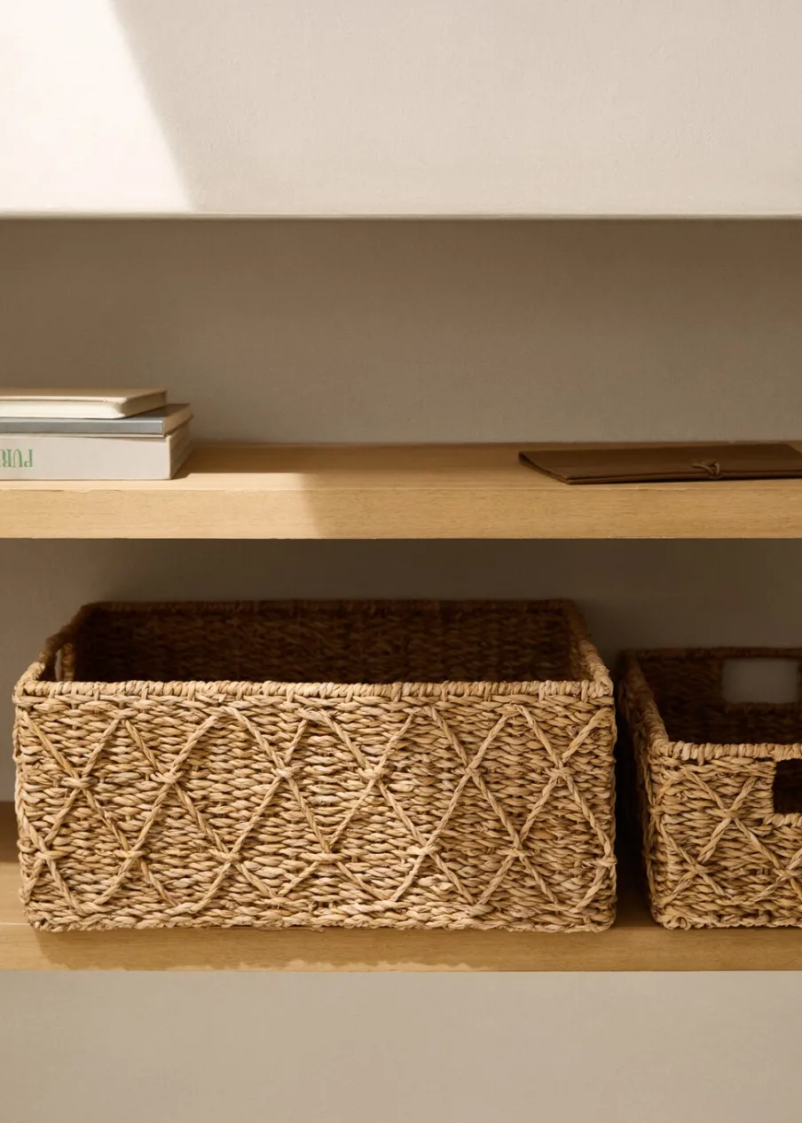 Wymiary: 45 x 35 x 21 cm. 100% pałka. Struktura z metalu. Tkanina z naturalnego włókna. Do przechowywania i organizowania książek, ubrań, zabawek i innych przedmiotów. Zaprowadzisz porządek w elegancki sposób, a rustykalna estetyka będzie świetnie dopełniać wystrój Twojego domu. Ten model koszyka jest dostępny w 2 rozmiarach (M, L).