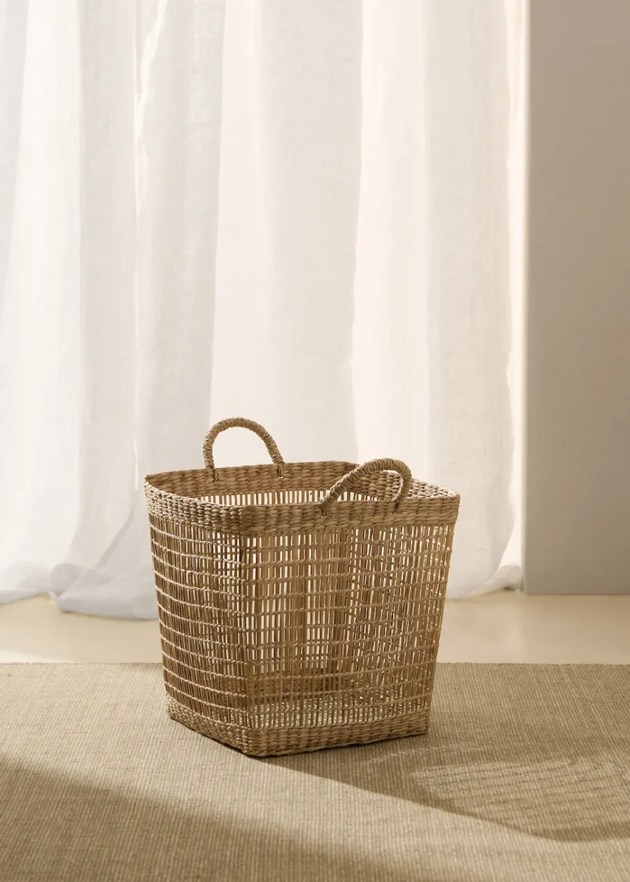 Tkanina z 100% alg. Naturalne włókna. Dwa uchwyty. Ten model koszyka jest dostępny w 2 rozmiarach (M, L). Wymiary: 29 x 29 x 29 cm. Idealny do przechowywania rzeczy lub jako przedmiot dekoracyjny. Uniwersalne i funkcjonalne wzornictwo doda naturalnego i eleganckiego akcentu do każdego pomieszczenia. Idealny do utrzymania porządku w domu ze stylem.