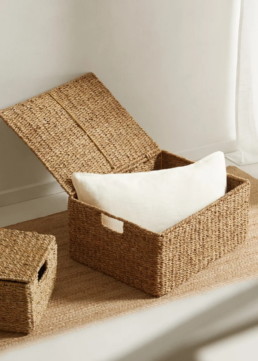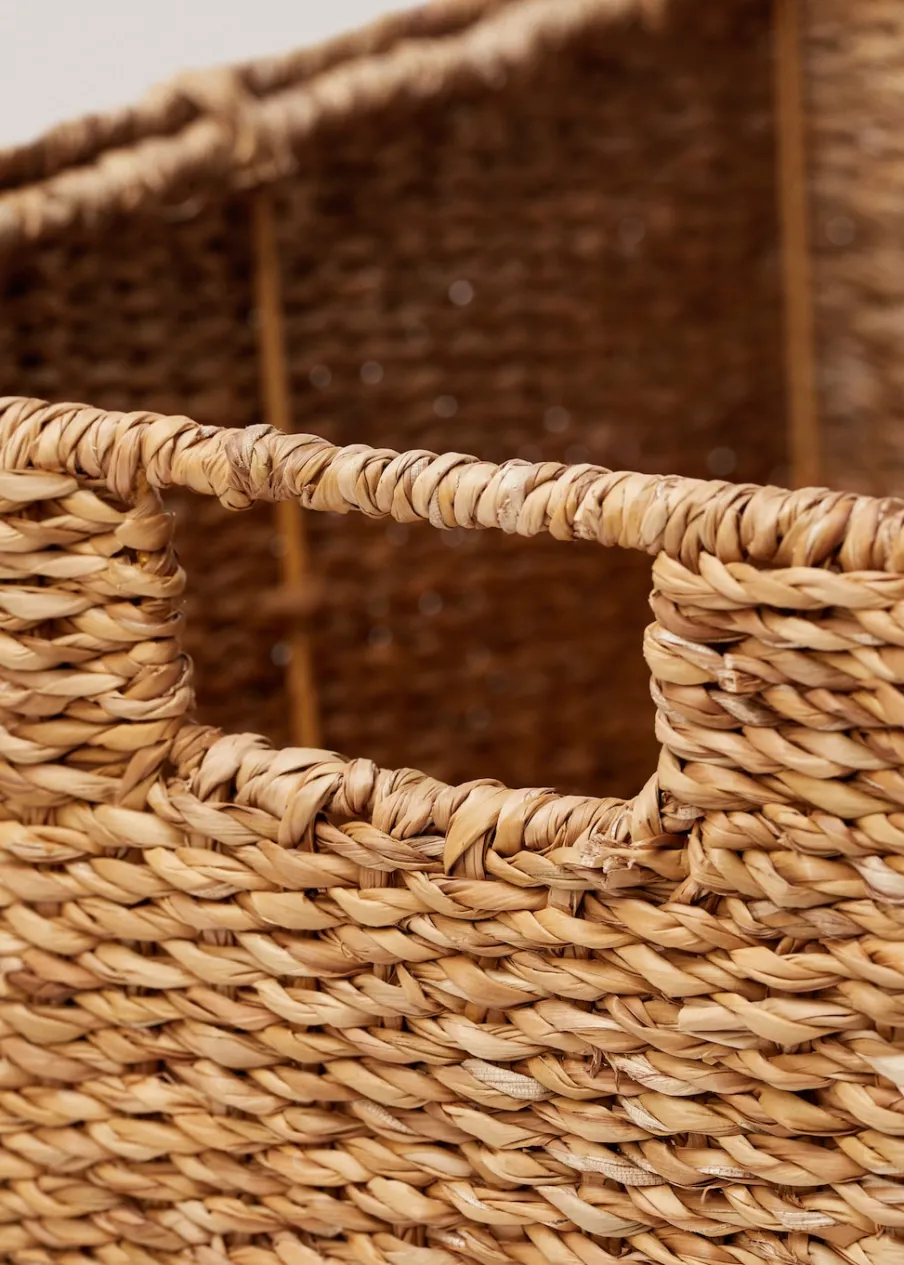 Wymiary: 45 x 35 x 21 cm. Model pleciony. Naturalne włókna. Żelazny stelaż. Dwa uchwyty. Ten model koszyka jest dostępny w 2 rozmiarach (M, L).