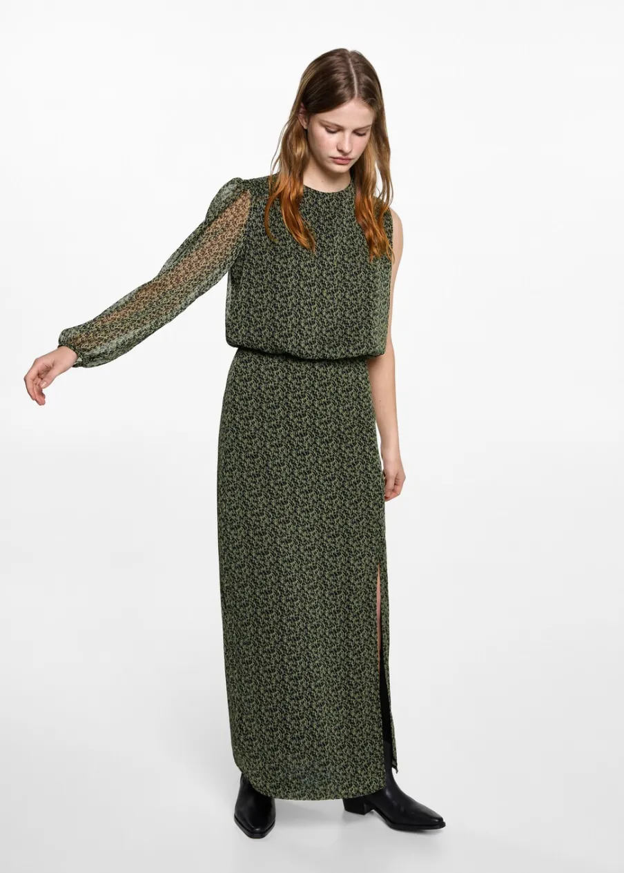 Lejąca tkanina. Abstrakcyjny wzór. Okrągły dekolt. Długi bufiasty rękaw. Elastyczne mankiety. Total look.