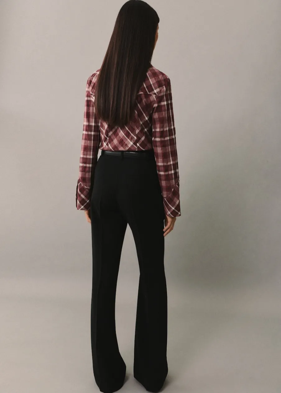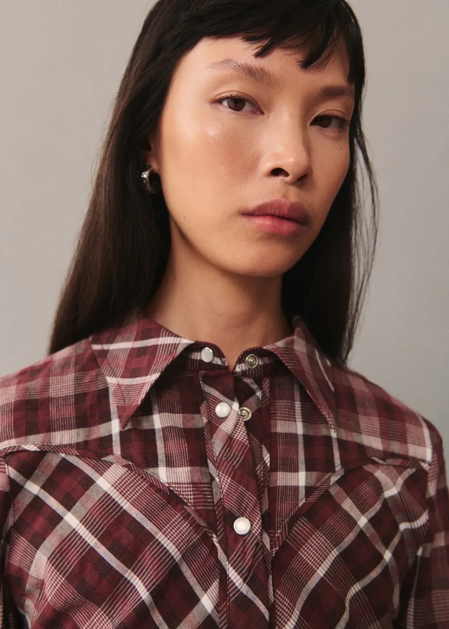 Tkanina mieszanka bawełny. Model prosty. Wzór w kratę. Koszulowy kołnierz. Długi rękaw z guzikami na mankietach. Modelka ma 177 cm wzrostu i nosi rozmiar S/36. Zapięcie na guziki z przodu.