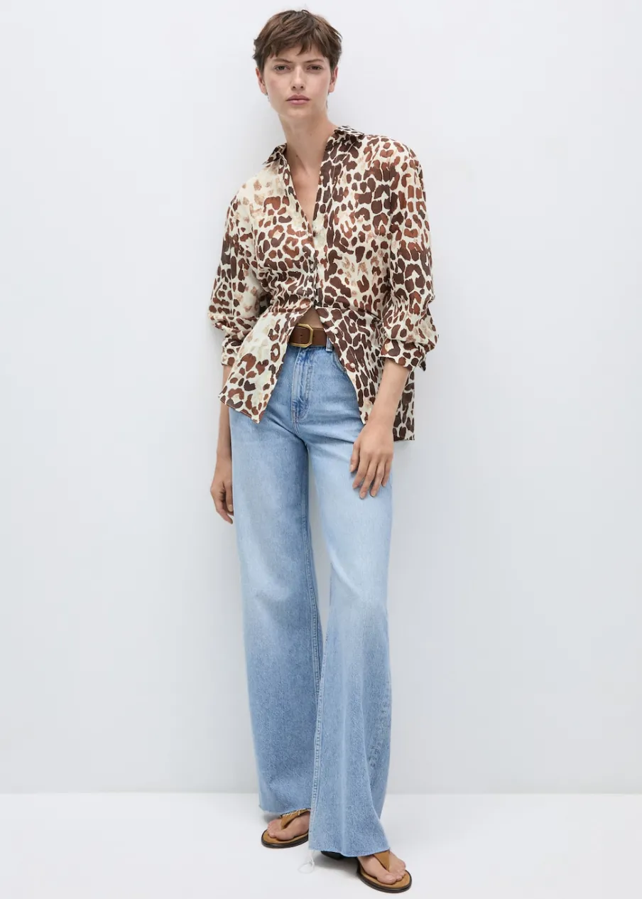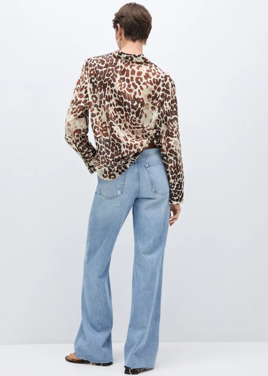 OpisWzór w lamparcie cętki. Model prosty. Zwierzęcy wzór. Kwiatowy wzór. Koszulowy kołnierz. Długi rękaw z guzik…