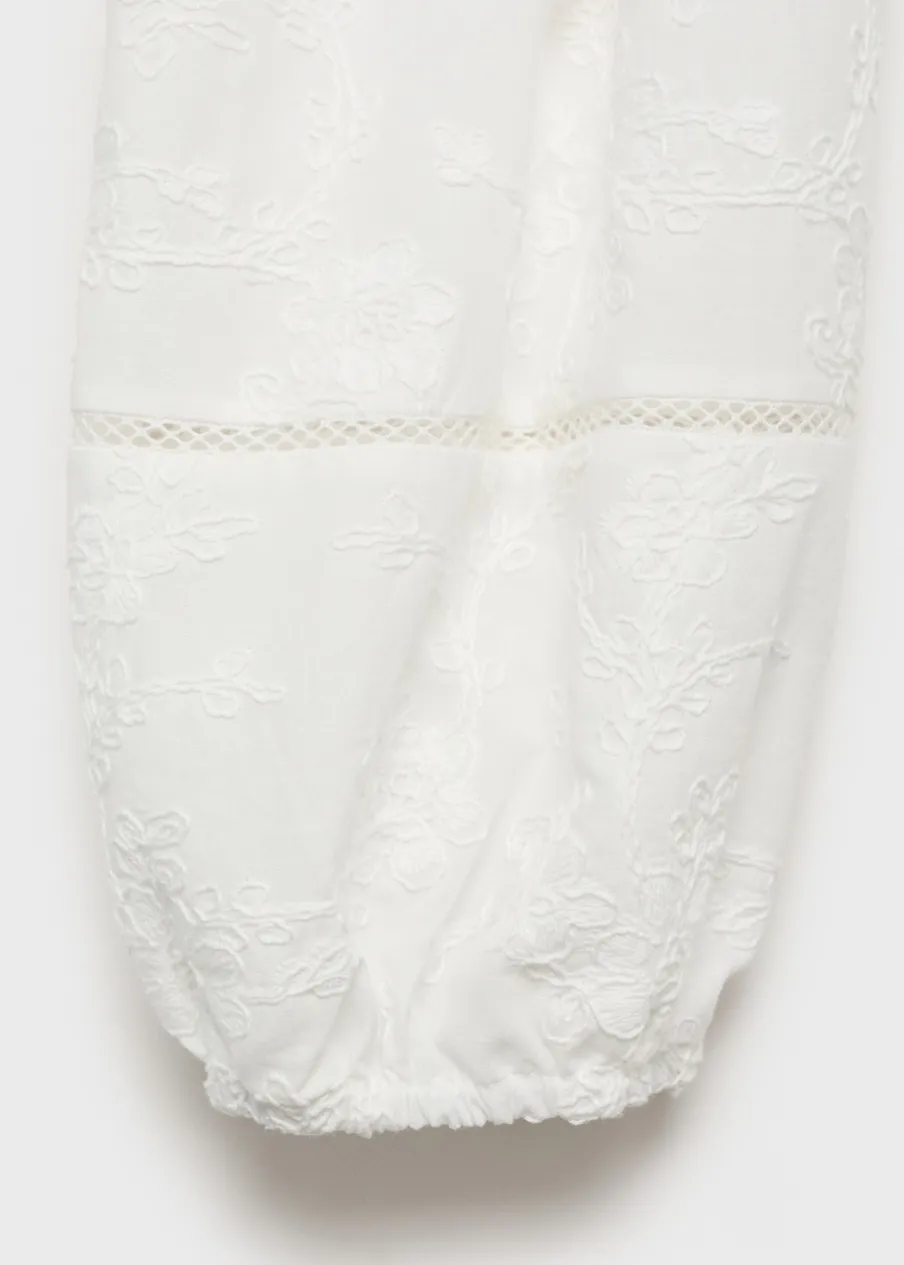 OpisTkanina z 100% bawełny. Model prosty. Haftowany motyw. Stójkowy kołnierzyk. Długi rękaw. Bufiasty rękaw ze śc…
