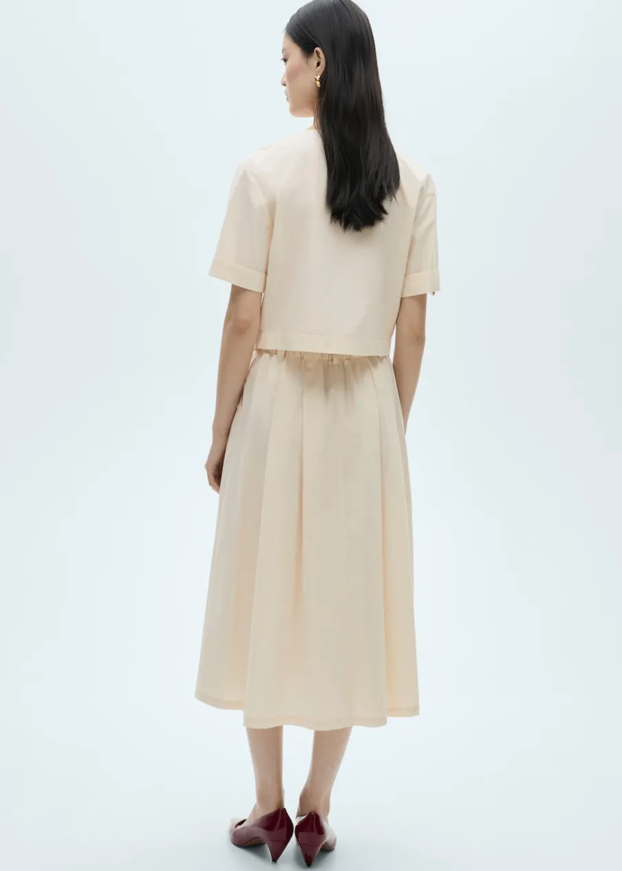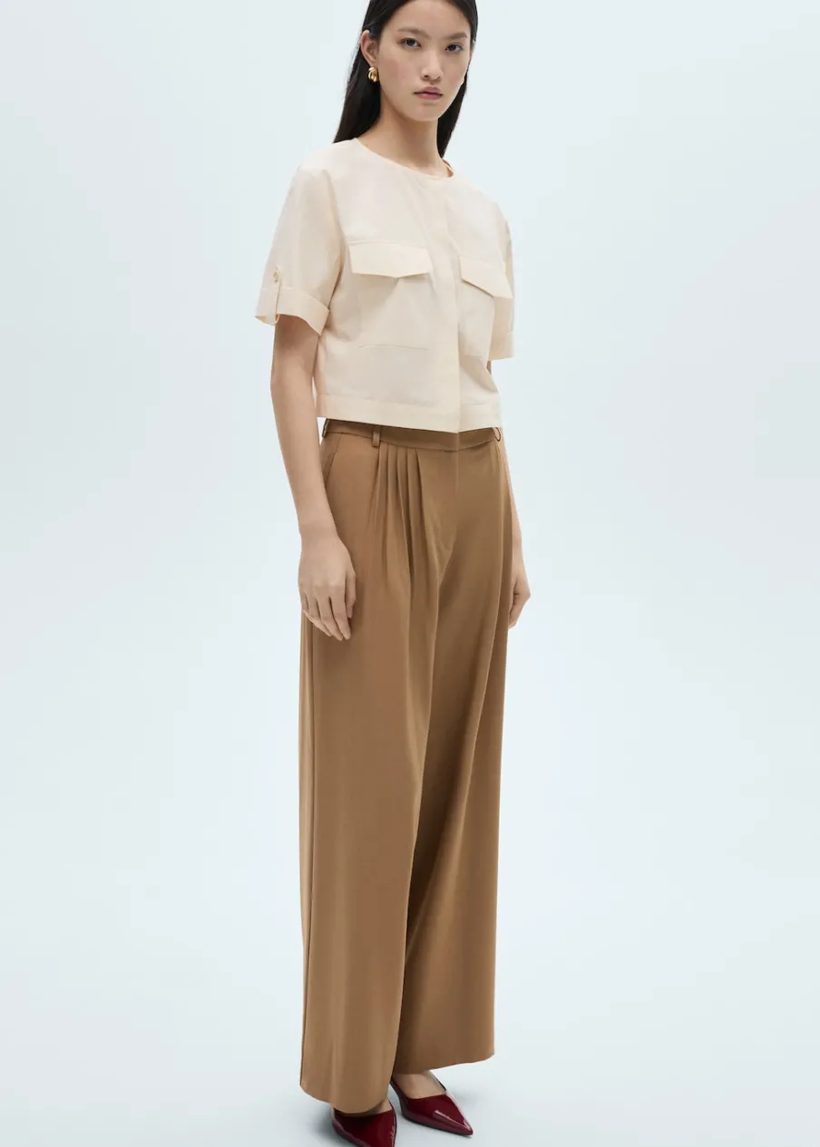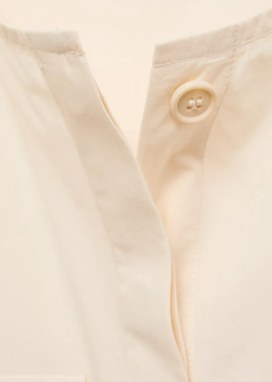 Bawełna 100%. Cienka tkanina. Deseń crop. Model prosty. Okrągły dekolt. Krótki, wywinięty rękaw. Kryte zapięcie na guziki. Zapięcie z przodu na guziki. Dwie kieszenie z patkami z przodu.