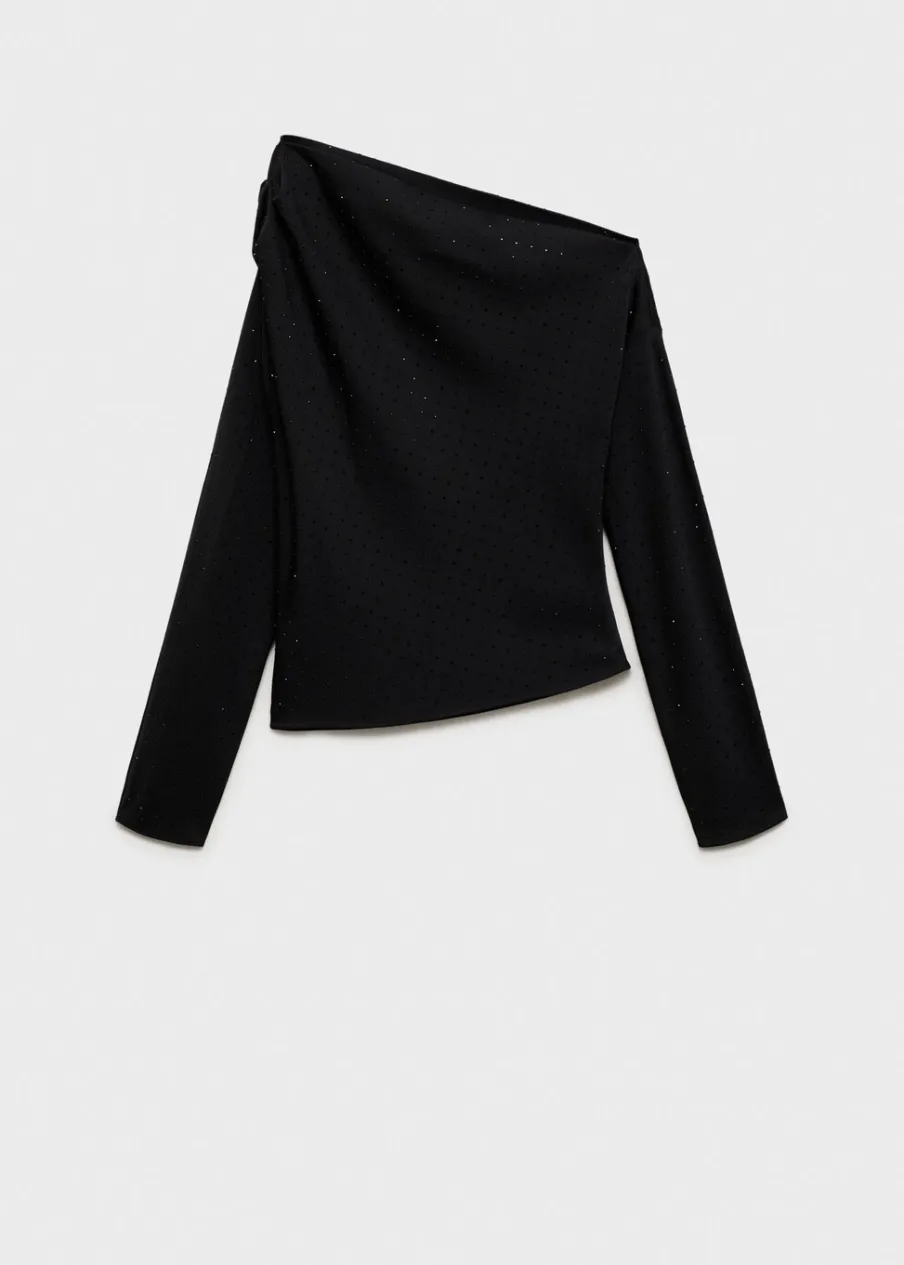 OpisTkanina z cekinami. Asymetryczny krój. Fason z odkrytymi ramionami. Model wcięty. Asymetryczny dekolt. Długi ręk…