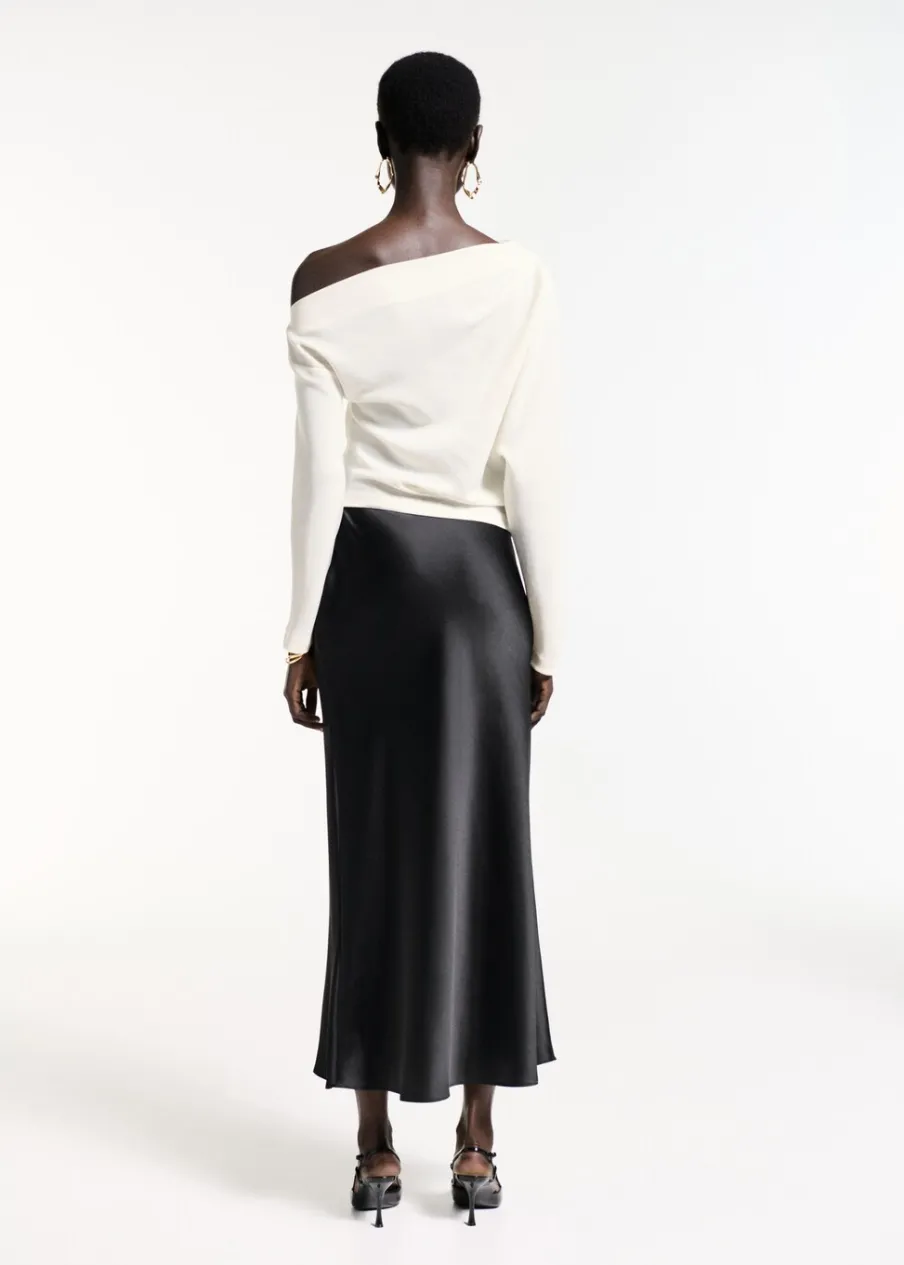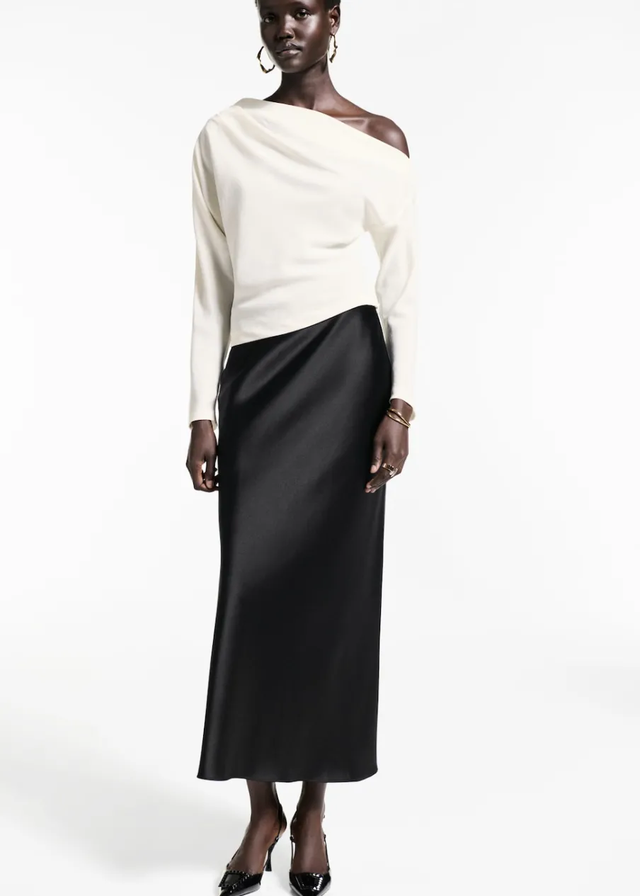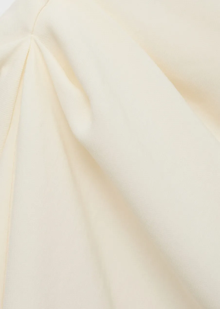 OpisAsymetryczny krój. Model wcięty. Fason z odkrytymi ramionami. Asymetryczny dekolt. Długi rękaw. Marszczony detal…