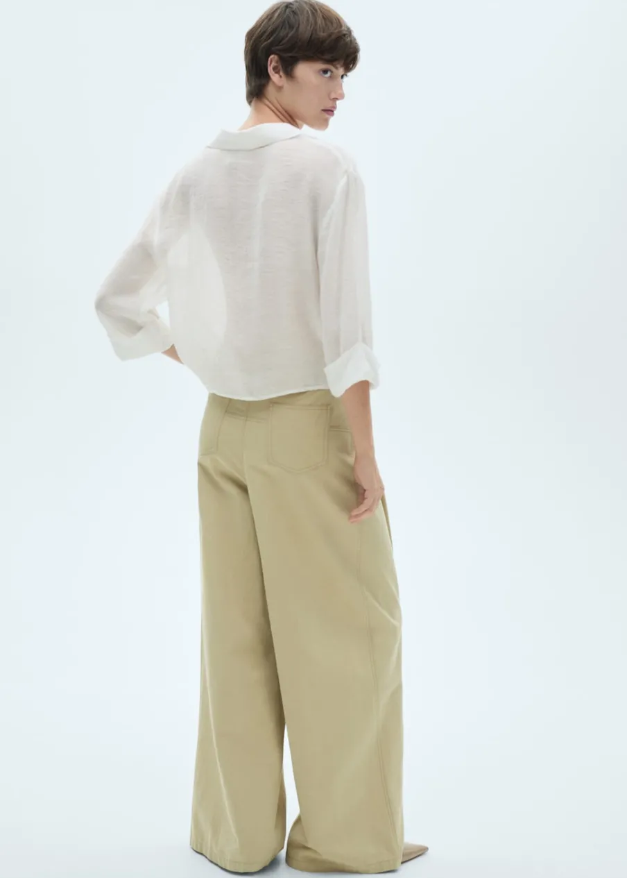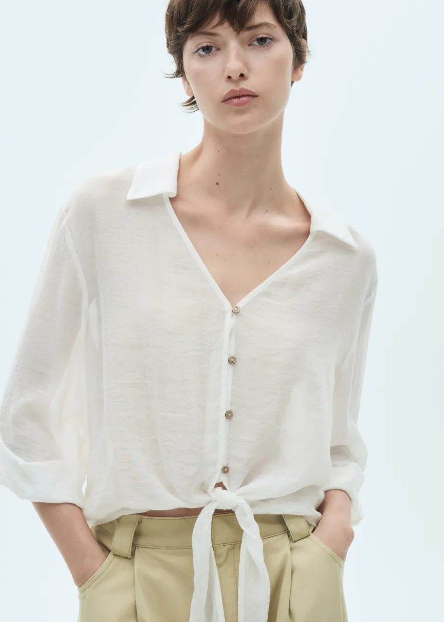 Lejąca tkanina. Styl koszulowy. Model oversize. Dekolt V. Długi, rozszerzany rękaw. Zapięcie z przodu na guziki. Regulowane wiązanie. Modelka ma 174 cm wzrostu i nosi rozmiar S/36.