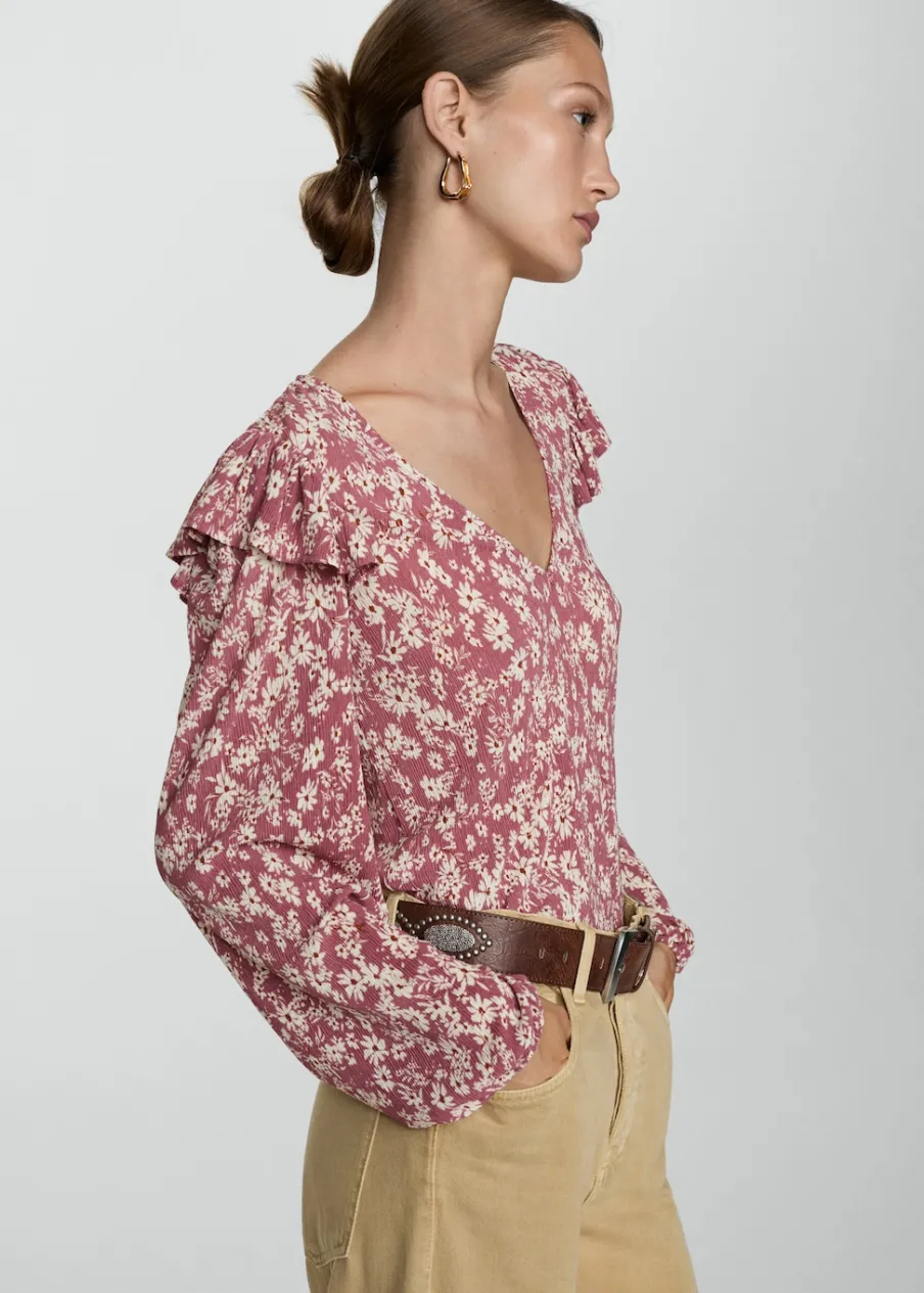 OpisLejąca tkanina. Model prosty. Dekolt V. Długi rękaw z elastycznymi mankietami. Falbanki na ramionach. Dostępne w…