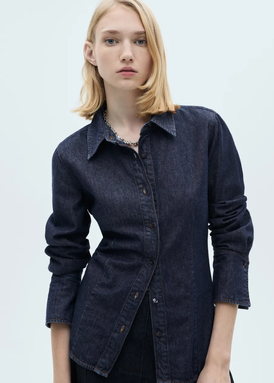 Bawełna 100%. Rinse wash. Tkanina bawełniana w dżinsowym stylu. Model prosty. Koszulowy kołnierz. Długi rękaw z guzikami na mankietach. Zapięcie z przodu na guziki. Total look.