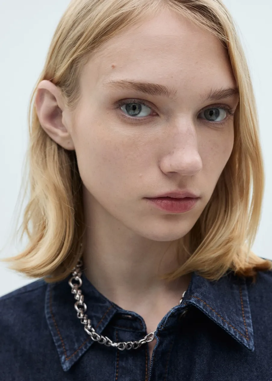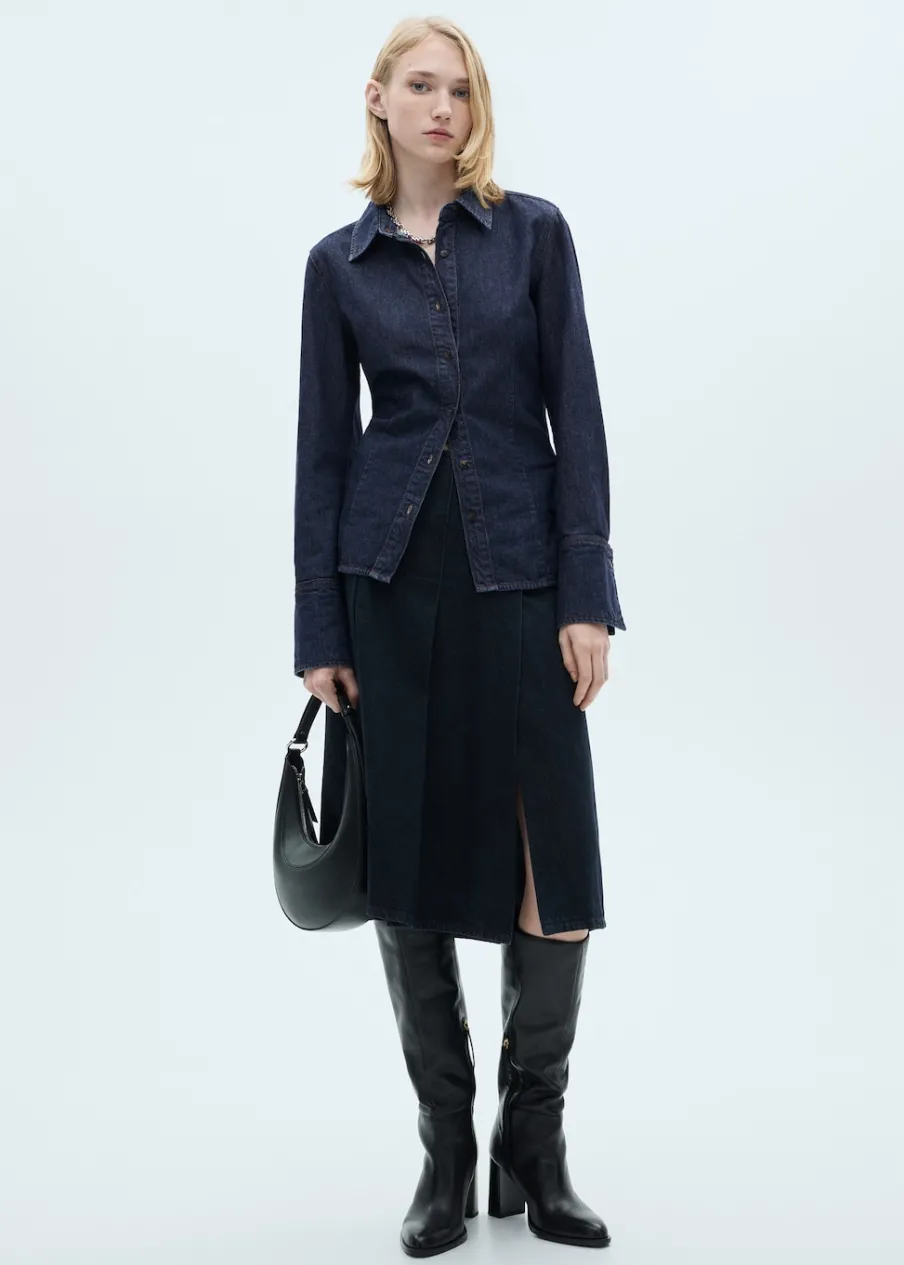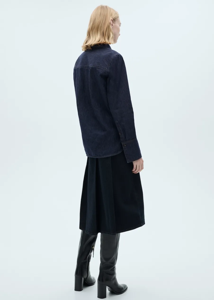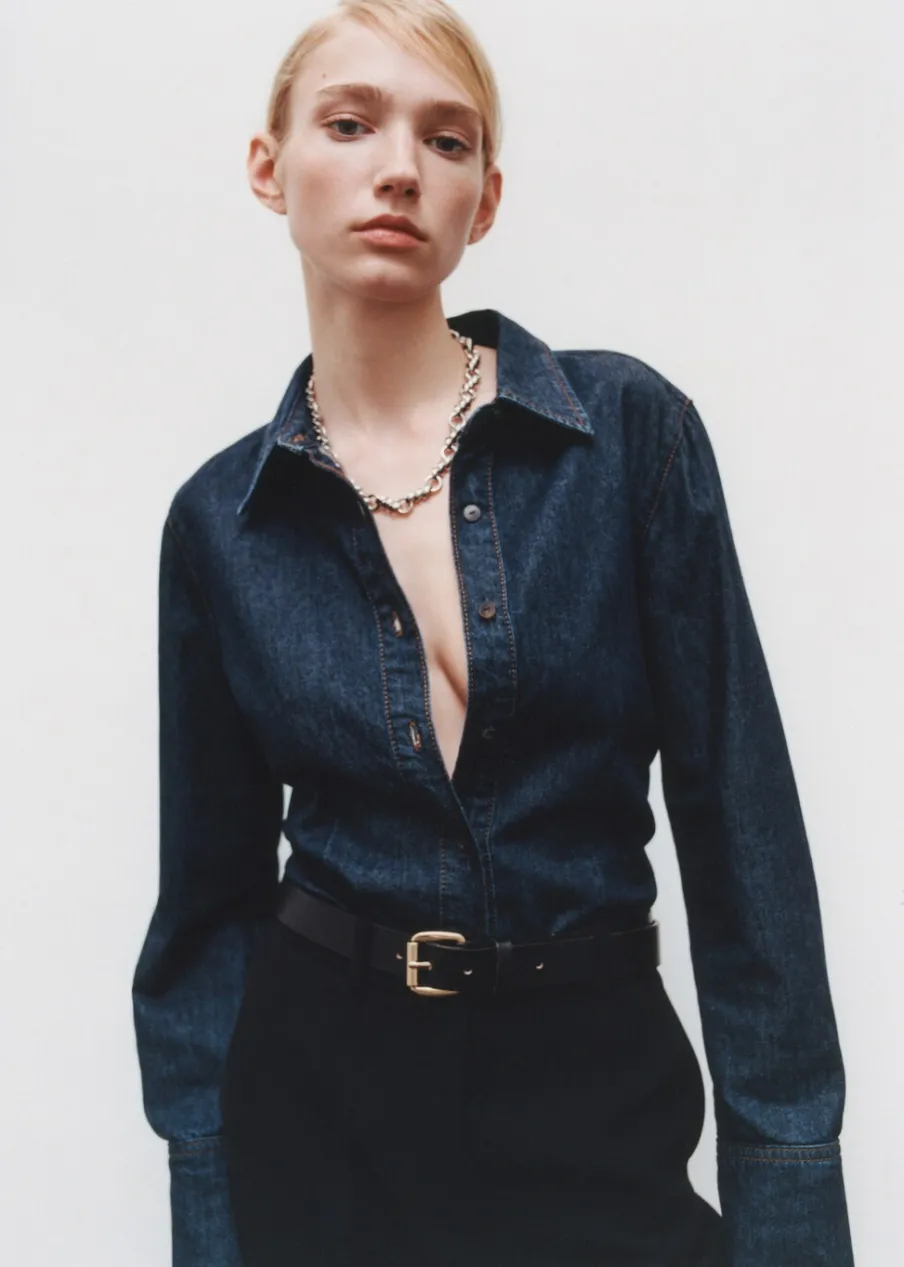 OpisBawełna 100%. Rinse wash. Tkanina bawełniana w dżinsowym stylu. Model prosty. Koszulowy kołnierz. Długi rękaw …
