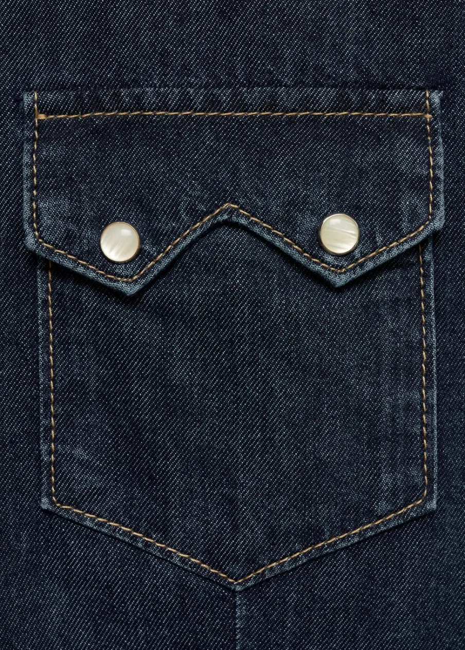 OpisTkanina bawełniana w dżinsowym stylu. Model prosty. Koszulowy kołnierz. Długi rękaw z guzikami na mankietach. D…