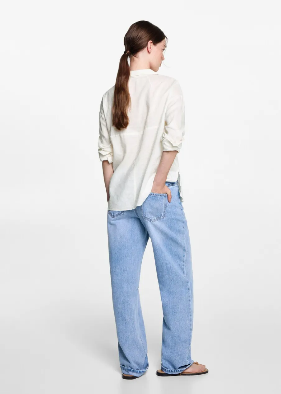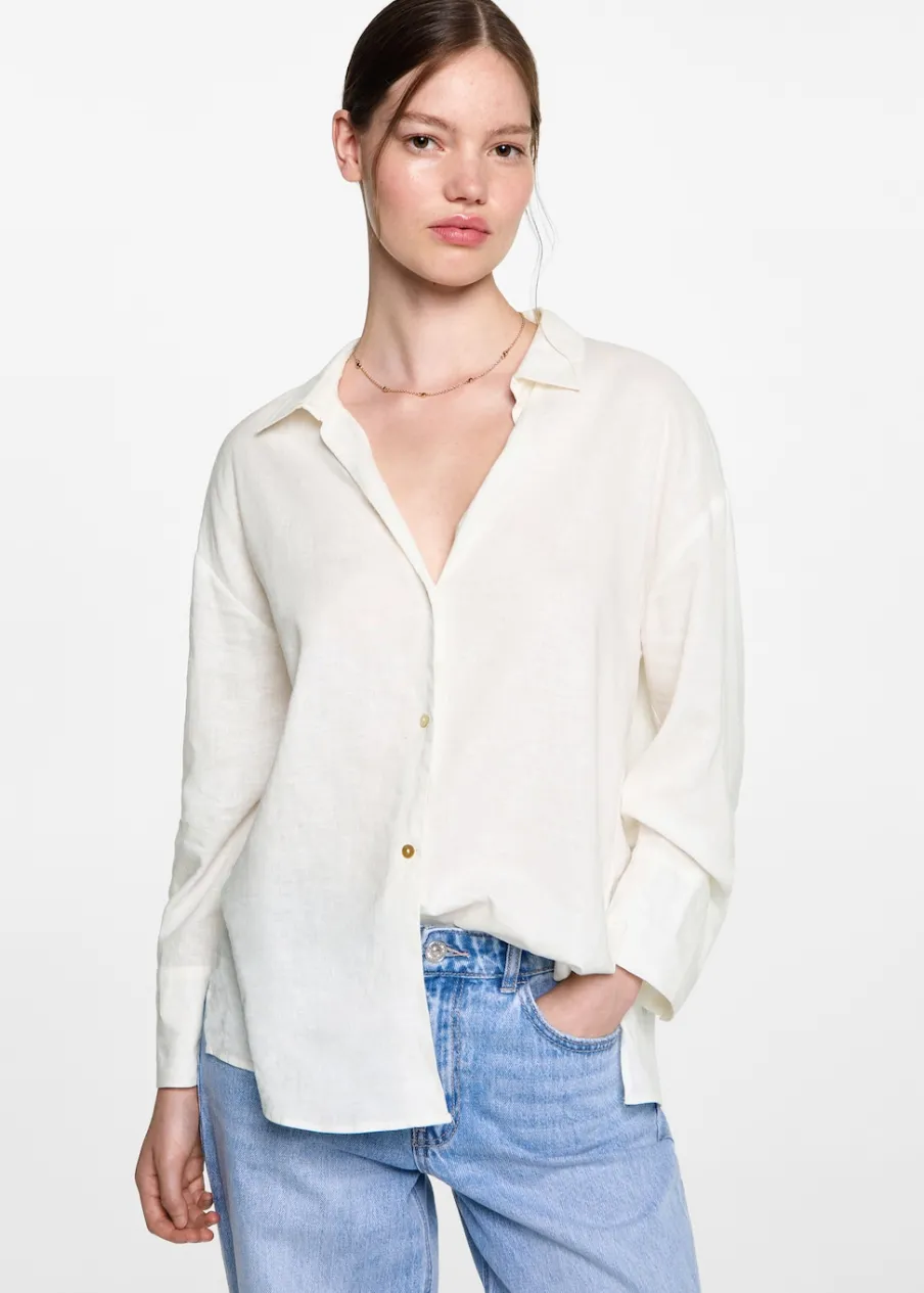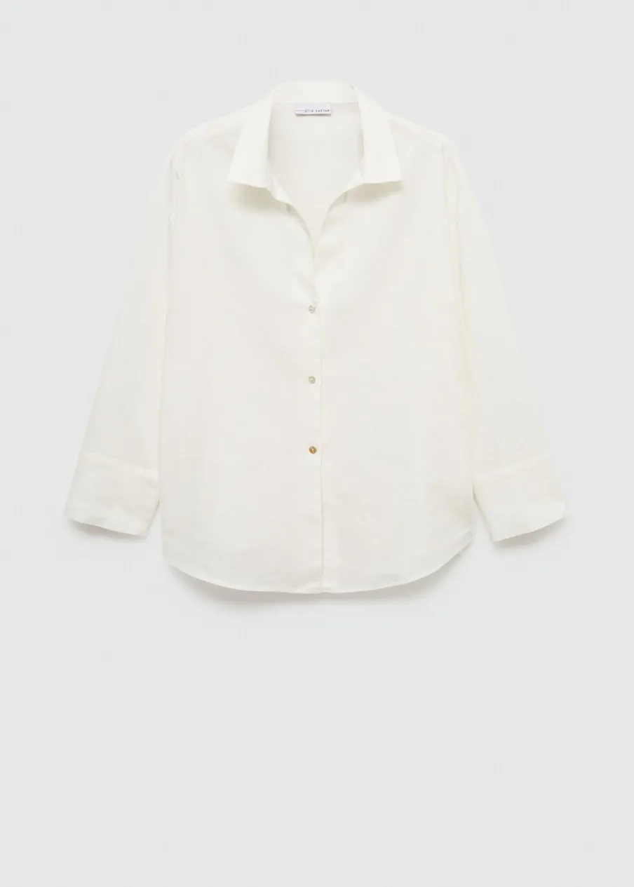OpisTkanina lniana. Krój regular. Koszulowy kołnierz. Długi rękaw. Zapinane mankiety. Zapięcie na guziki.