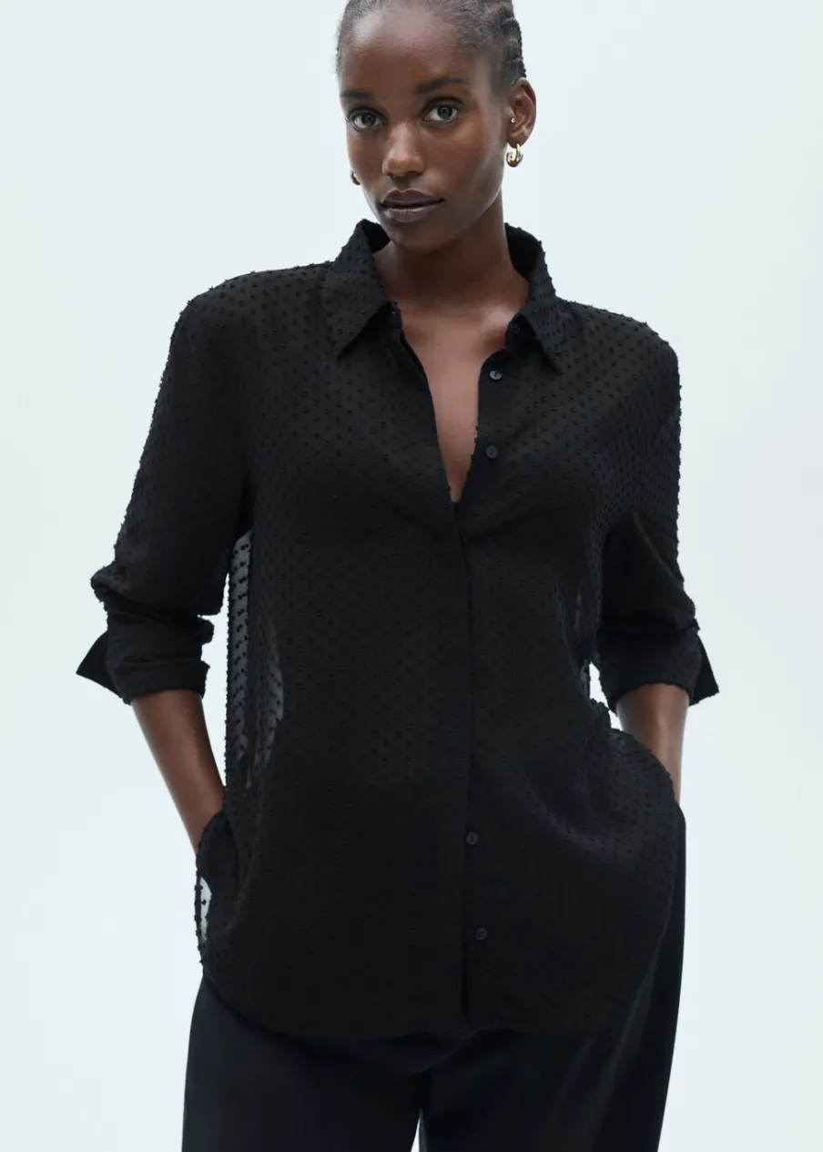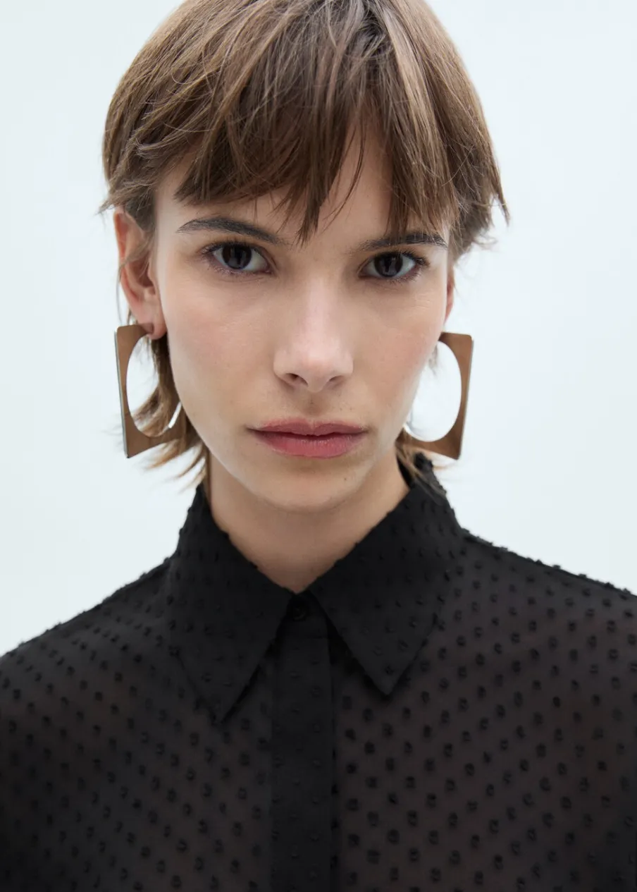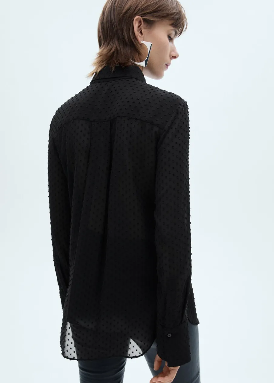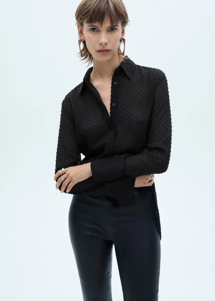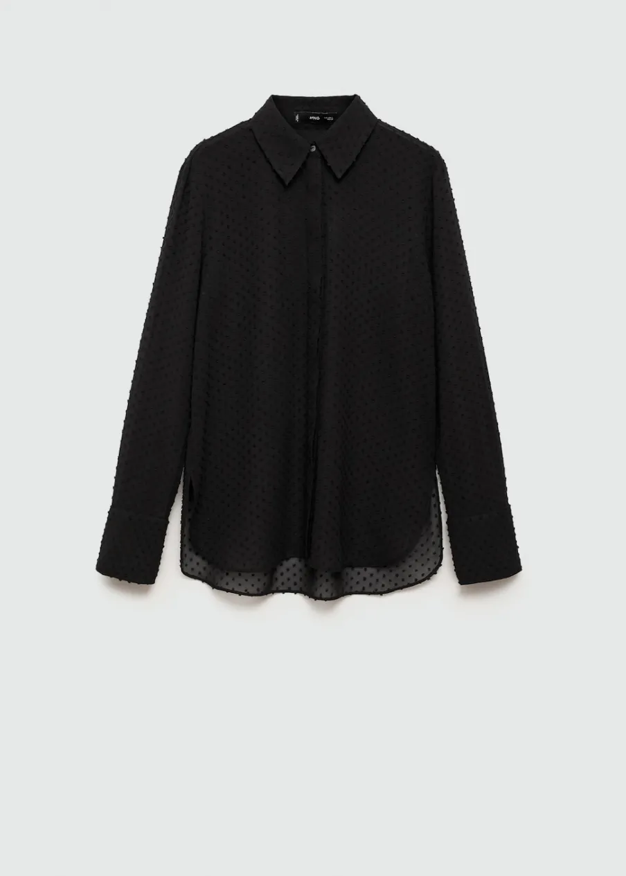 Tkanina plumeti. Model długi. Model prosty. Koszulowy kołnierz. Długi rękaw z guzikami na mankietach. Dostępne w Plus Size. Modelka ma 175 cm wzrostu i nosi rozmiar S/36. Kolekcja wizytowa. Kryte zapięcie na guziki z przodu.