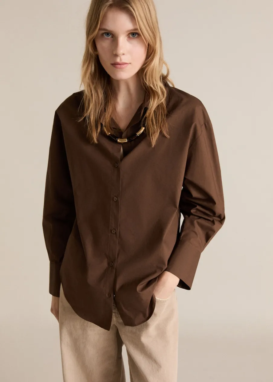 Tkanina z 100% bawełny. Model prosty. Krój regular. Koszulowy kołnierz. Długi rękaw z guzikami na mankietach. Zapięcie z przodu na guziki.