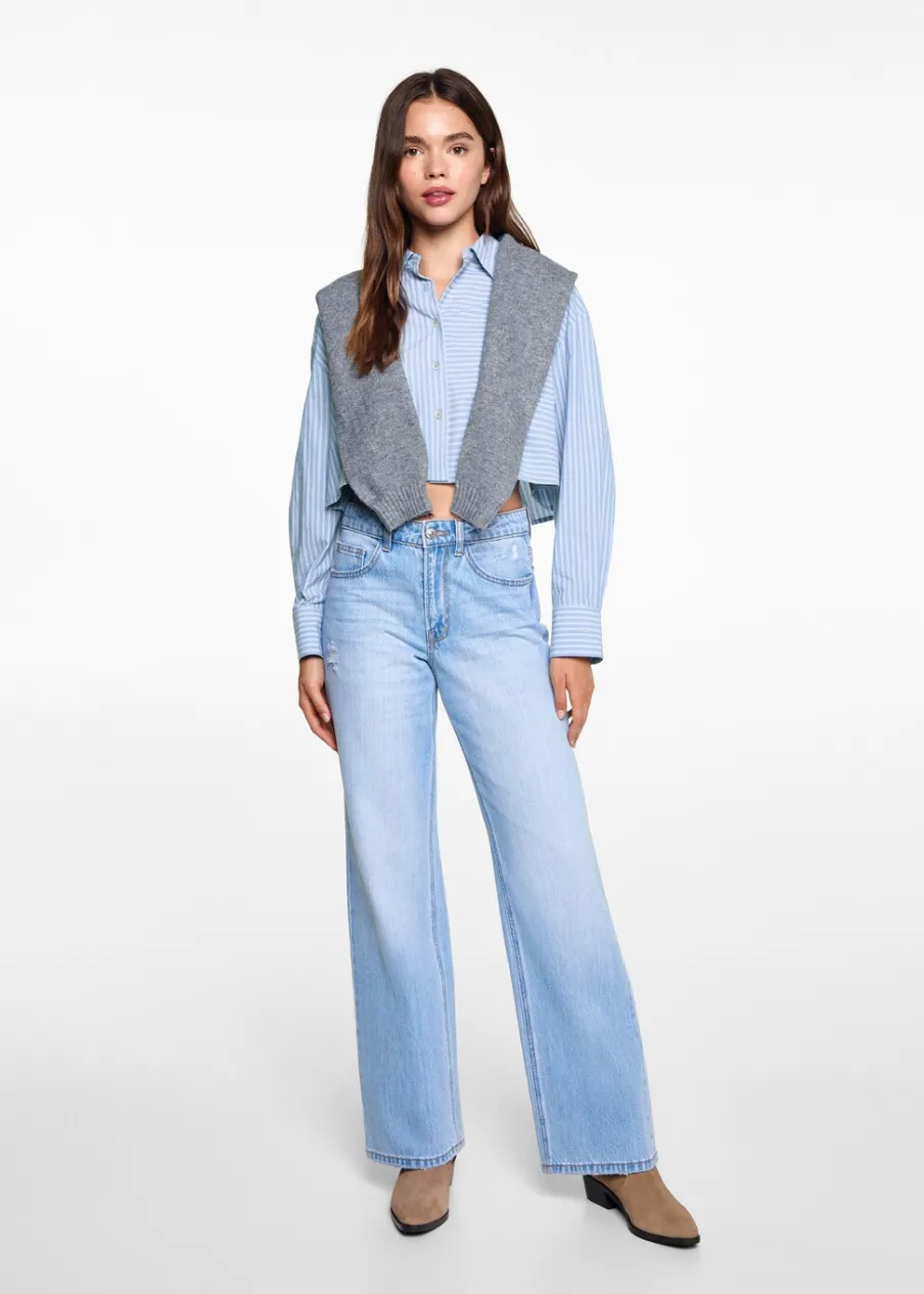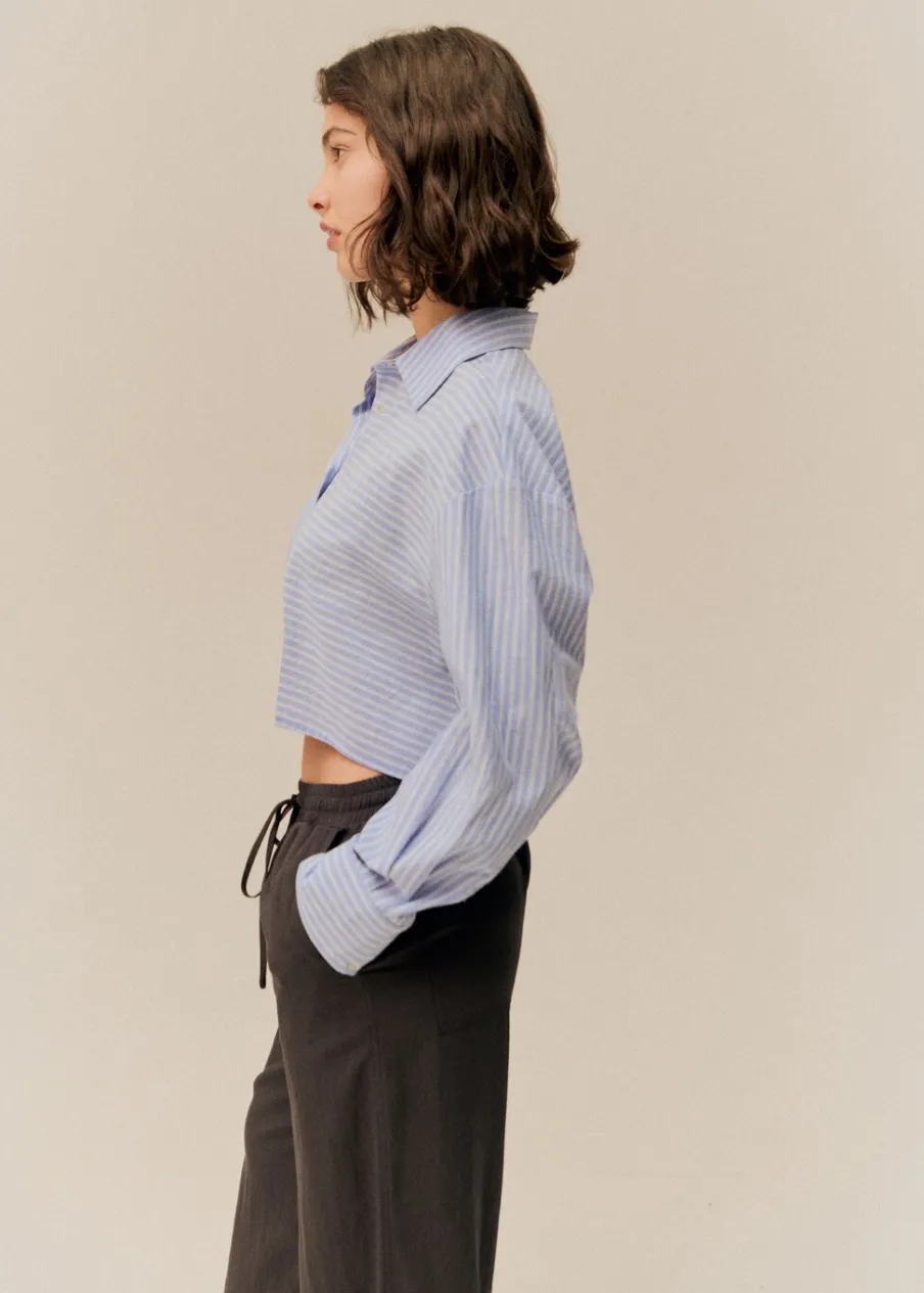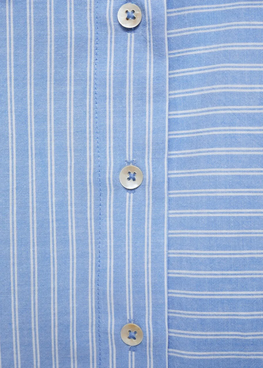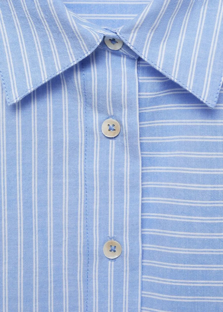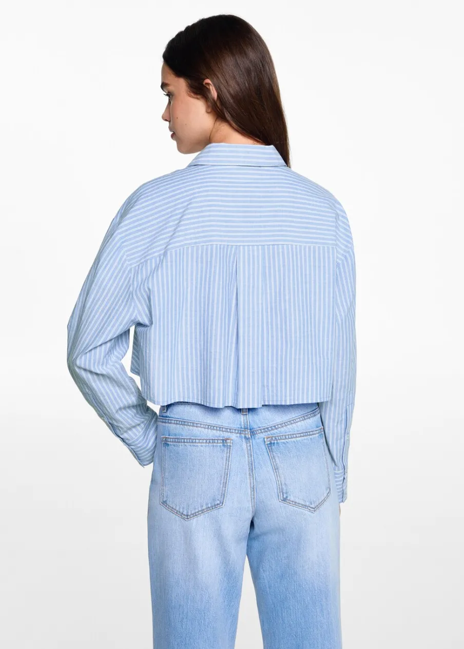 Bawełna 100%. Model prosty. Wzór w pasy. Koszulowy kołnierz. Deseń crop. Długi rękaw z guzikami na mankietach. Zapięcie na guziki. Modelka ma 172 cm wzrostu i nosi rozmiar M. Powrót do szkoły.