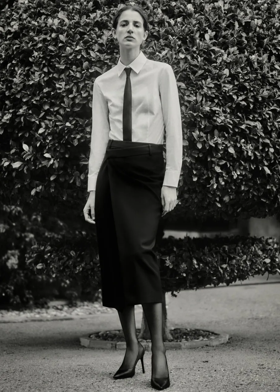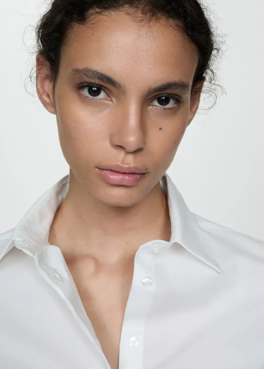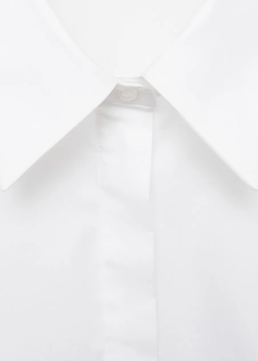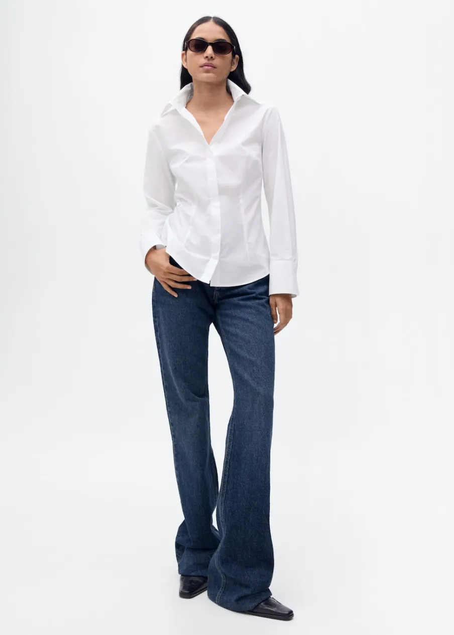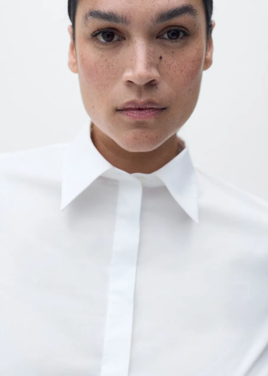 Bawełniana tkanina. Model wcięty. Slim-fit. Fason garniturowy. Koszulowy kołnierz. Długi rękaw z guzikami na mankietach. Zapięcie z przodu na guziki. Detal z zakładkami. Wyłącznie online. Dostępne w Plus Size. Stylizacje biurowe.